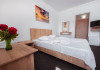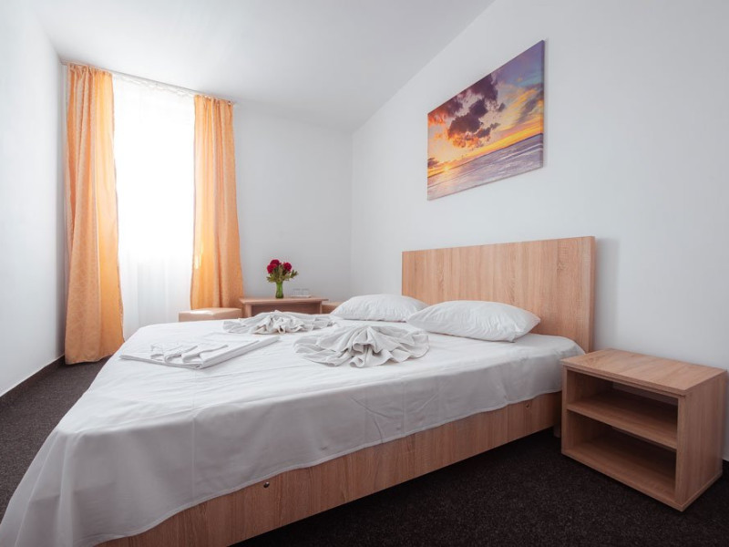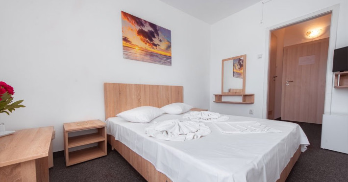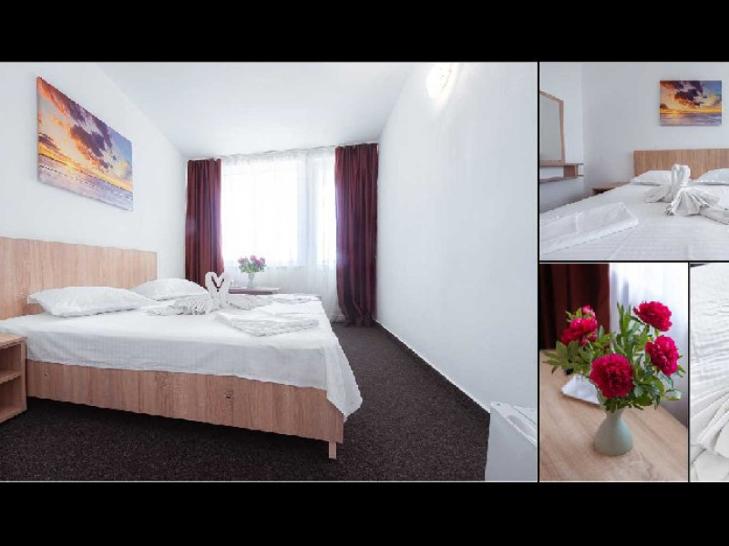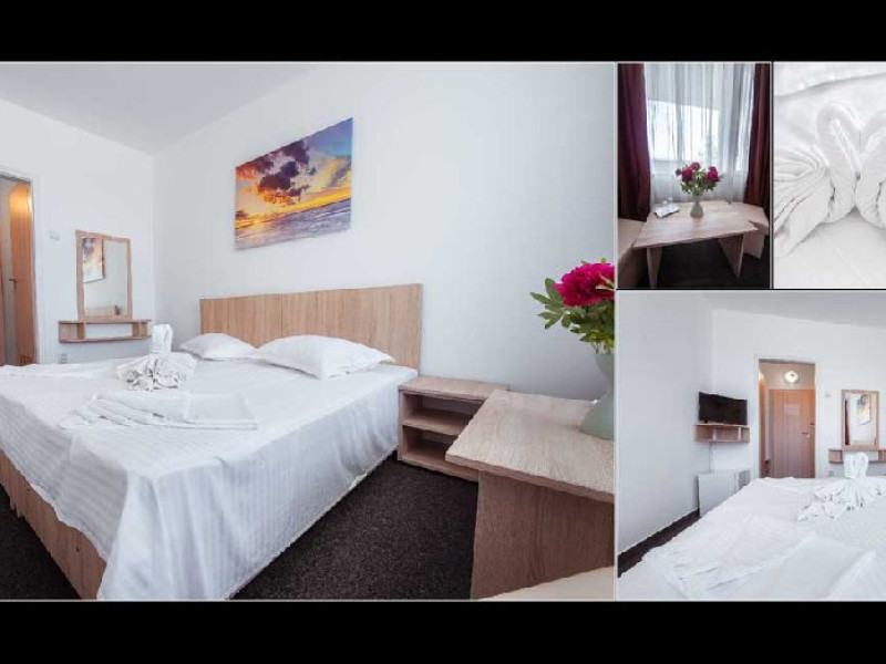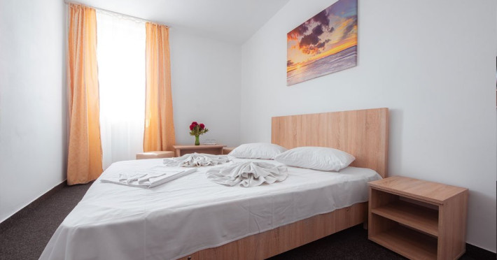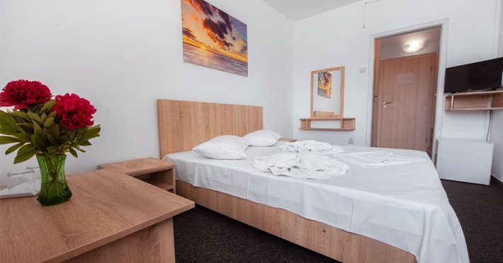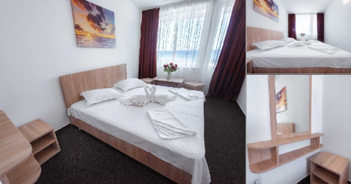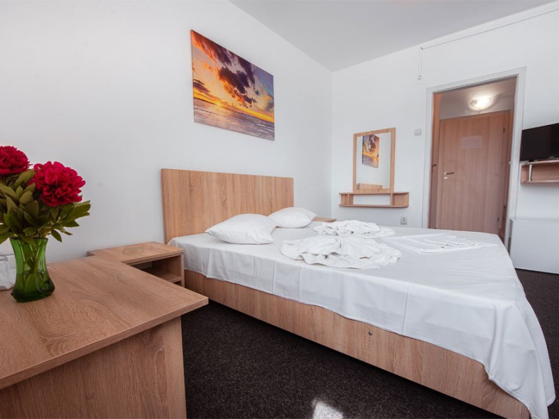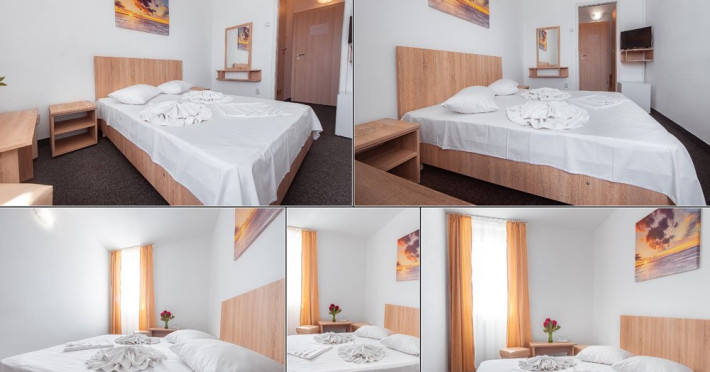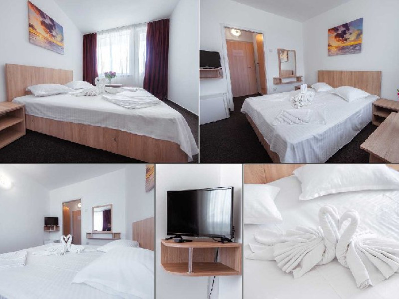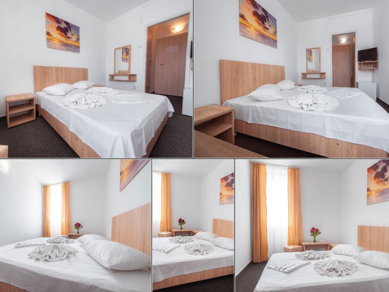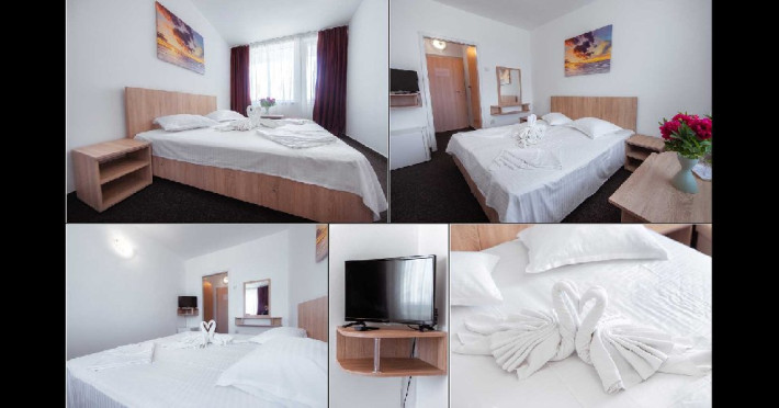 DESCRIERE CAMERE Dotari camere: TV, minibar, baie cu dus, balcon la 61 de camere. Camerele cu balcon sunt dotata cu doua paturi, iar cele fara balcon cu pat matrimonial.