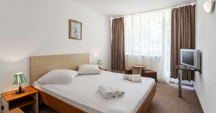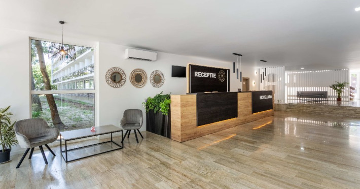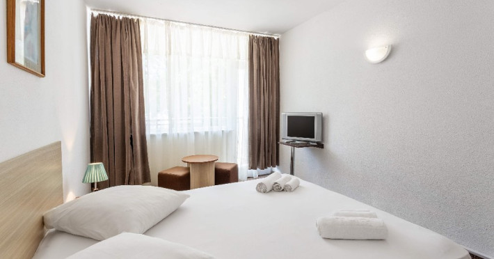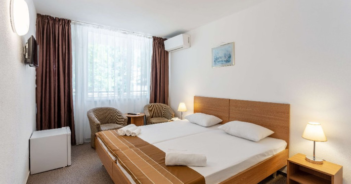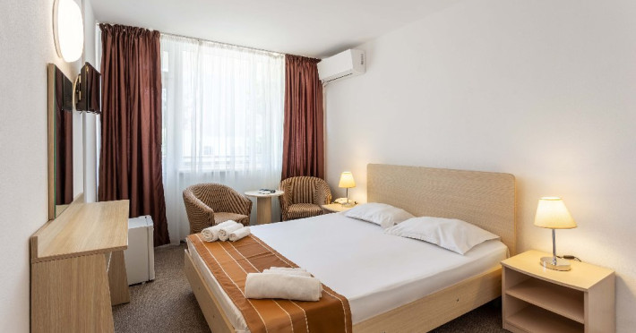 FACILITATI UNITATEReceptie, restaurant 2*, bar, terasa, parcare (in limita locurilor disponibile), parter si 5 etaje, 2 lifturi, plaja privata si sezlonguri.