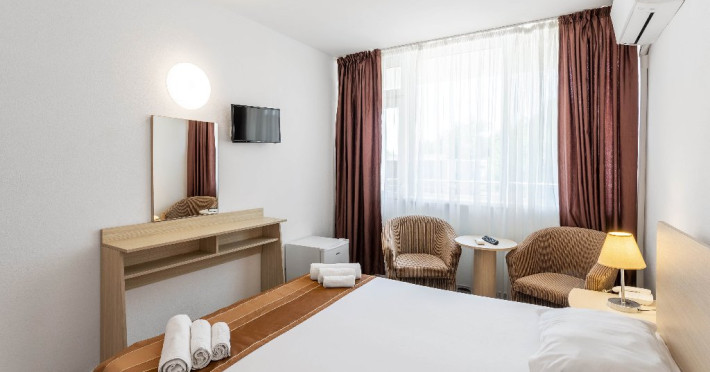 POLITICITaxa de statiune: se achita la receptia hotelului in ziua cazarii, o taxa de statiune in valoare de 5 lei/zi/persoana. Taxa de statiune se aplica pentru persoanele cu varsta peste 18 ani.