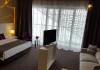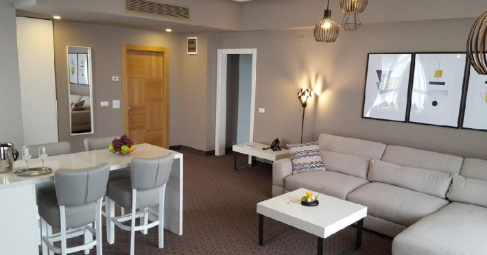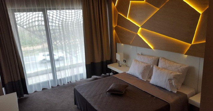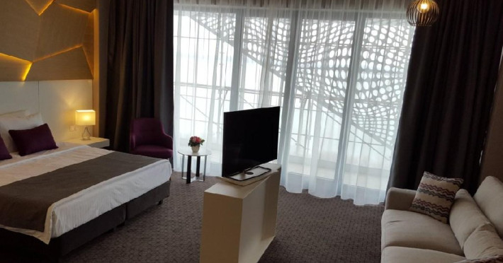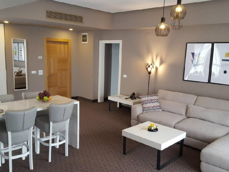 DESCRIERE CAMERE Dotari camere: aer conditionat, TV, minibar, seif, baie cu dus, balcon, internet -wi-fi, uscator de par, halat de baie, papuci de casa, telefon, plasa de tantari. DUBLA SUPERIOARA Suprafaa camerei: 22 m, un pat King size (180/200 cm) sau 2 paturi de o persoana (90/200 cm); Capacitate maxima: 2 adulti si un copil pana la 7 ani. DUBLA EXECUTIVA Suprafaa camerei: 35 m, un pat King size (180/200 cm) si o canapea extensibila; Capacitate maxima: 2 adulti si doi copii pana la 12 ani neimpliniti. FAMILY ROOM Este compusa din 2 DUBLE SUPERIOARE alaturate, cu usa intre ele. Suprafaa camerei: 44 m, un pat King size (180/200 cm) si 2 paturi de o persoana (90/200 cm); Capacitate maxima: 4 adulti si 2 copii pana la 7 ani neimpliniti. APARTAMENT DELUXE Suprafaa apartamentului: 70 m (un dormitor si un living): un pat King size (180/200 cm) in dormitor si o canapea extensibila in living. Capacitate maxima: 4 persoane dar nu mai mult de 3 adulti.