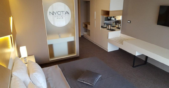 INFORMATII GENERALE Localizat la kilometrul 0 al distractiei din Mamaia, in zona de nord a Statiunii, hotelul NYOTA va asteapta cu 73 spatii de cazare potrivite pentru weekend-urile cu nopti albe dar si pentru sejururi lungi cu familia la Marea Neagra. FACILITATI UNITATE Dotari generale: restaurant, parcare proprie- etajata, supravegheata video, internet -wi-fi, bar la piscina, terasa. Facilitati gratuite: accesul si sezlongul la piscina incalzita a hotelului (in limita locurilor disponibile in perioada 01.06-15.09), sezlong si umbrela la plaja (in limita locurilor disponibile in perioada 01.06-15.09 pe plaja Maya), internet, parcare garantata pentru fiecare camera. Sali de conferinta: 2 sali de cate 20 locuri fiecare care se pot transforma intr-o sala de 40 locuri; 1 sala de 70 locuri in sistem teatru. Salile de conferinta sunt dotate cu sonorizare, ecrane, video proiectie si internet WI-FI. Fitness/Wellness/Sport: piscina in aer liber- incalzita, cu zona de hidromasaj si zona pentru copii.