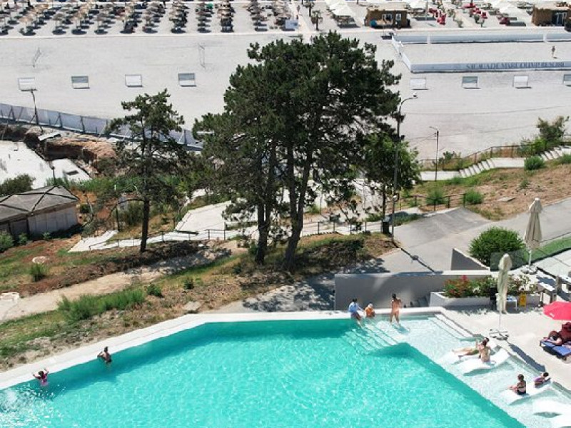 FACILITATI UNITATE Zambetele si serviciile de calitate cu care v-am obisnuit in unitatile noastre se vor regasi si in noul hotel ce beneficiaza de peste 200 de camere, suite si apartamente racoroase si confortabile, modernizate intr-un stil contemporan, la standarde de 4 stele si cu acces la o gama variata de servicii precum: plaja privata situata fix in fata hotelului, amenajata si largita incepand cu anul 2025 sa deserveasca clientii hotelului; un superb restaurant cu vedere panoramica amplasat desupra falezei cu seri tematice si bucate alese, atent pregatite de o echipa cu renume; Lobby cu open bar de bauturi deschis zilnic, terase, locuri de joaca exterioare pentru copii, 2 piscine exterioare - una dedicata copiilor si una pentru adulti si ample spatii deschise in dorinta de a creiona o experienta de vis incununata de frumusetea peisajului ce ne confera un mare avantaj.