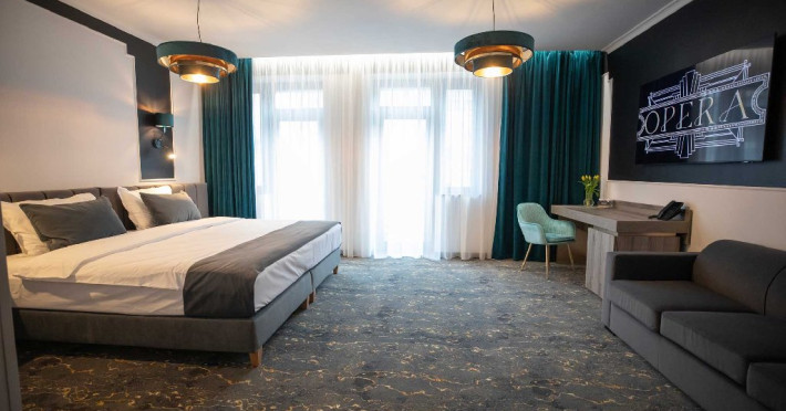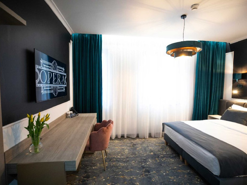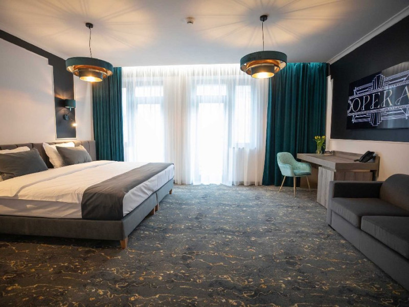 DESCRIERE CAMERE Sunt disponibile 112 spatii de cazare, dintre care 15 sunt apartamente. Hotelul Opera dispune de asemenea de 8 camere single si de 89 de camere duble, din care 24 twin. La cerere, se pot transforma in camere Twin, toate tipurile de camere Deluxe, dar si unele din cele standard, totodata se pot adauga paturi pentru copii la cerere in camere (Deluxe cu sofa, Double deluxe, Double standard si Double deluxe cu fotoliu extensibil).