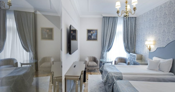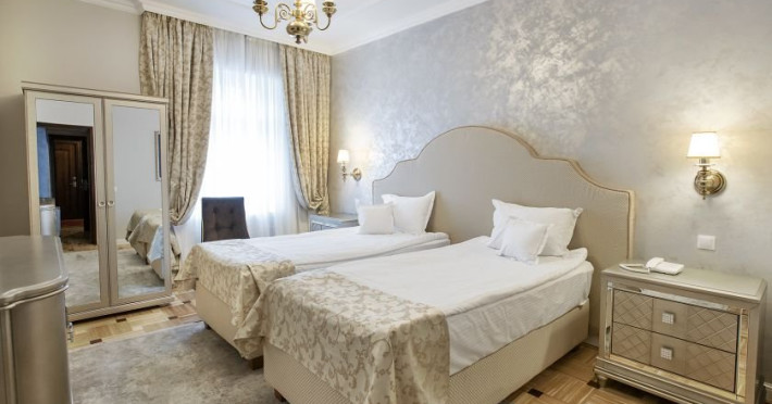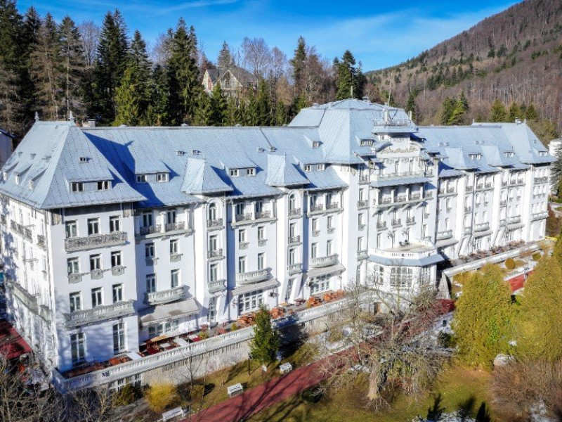 INFORMATII GENERALE Hotelul este situat ultracentral in statiunea Sinaia, chiar in parcul Ghica, in imediata vecinatate a Cazinoului si a Manastirii Sinaia. Hotelul PALACE, construit in anul 1911, in numai opt luni (intre 26 noiembrie si 15 iulie), dupa planurile arhitectului Petre Antonescu, a fost recent renovat si readus la imaginea din zilele sale glorioase. Hotelul PALACE este cu siguranta un palat nu numai prin creatie arhitecturala, ci si prin nivelul de confort si de calitate al serviciilor oferite. Hotelul Palace ofera oaspetilor sai din intreaga lume, atmosfera unui trecut indepartat, plin de liniste si ospitalitate. - Pozitie de exceptie, in parcul din centrul statiunii - Camere spatioase, luminoase, elegante, care beneficiaza din plin de lumina naturala - Arhitectura deosebita care iti aminteste de un timp al elegantei si bunului gust. DESCRIERE UNITATE DE CAZARE Hotelul dispune de 150 de spatii de cazare RENOVATE IN 2025 dintre care: 19 camere single, 119 camere duble: 72 de camere cu doua paturi si 47 de camere cu pat dublu. Camerele de 3* sunt situate la mansarda); 3 apartamente compuse din living si dormitor. Apartamentele dispun de cada cu hidromasaj. 9 garsoniere compuse din dormitor si living cu canapea extensibila. FACILITATI UNITATE CENTRUL LAVENDER SPA, situat la parterul hotelului Palace, cu ferestre catre parc, este locul perfect pentru relaxare. Puteti inota in piscina interioara sau va puteti relaxa in jacuzzi. Aveti la dispozitie o sala de fitness, o sauna umeda si una uscata, bai cu sare, o zona de relaxare si una dedicata sedintelor de masaj. DESCRIERE CAMERE Dotari camere: TV, minibar, baie cu dus, internet, uscator de par, telefon. LOCALIZARE Hotelul este situat ultracentral in statiunea Sinaia, chiar in parcul Ghica, in imediata vecinatate a Cazinoului si a Manastirii Sinaia. ATRACTII TURISTICE Muzeul Peles, Pelisor, Manastirea Sinaia, Muzeul Bucegi, Cazinoul Sinaia, Casa Memoriala G. Enescu POLITICI Nu sunt acceptate animalele de companie. La receptie se achita taxa statiune si taxa salvamont. SERVICII DE MASA Se acorda in unitatea restaurant Palace 4 stele, micul dejun in sistem bufet suedez, dejun si cina a la carte.FACILITATI COPII In camera dubla se poate adauga maxim un pat suplimentar. FACILITATI EVENIMENTE Dispune de 5 sali de conferinta astfel: Sala de conferinta I - ( George Enescu ) este situata la parterul hotelului, luminata natural cu o suprafata de 120 mp: - capacitate minima 50 de locuri in U shape - capacitate maxima 110 locuri in teatru Sala de conferinta II - ( Nicolae Iorga ) este situata la parterul hotelului, luminata natural cu o suprafata 48 mp: - capacitate minima 20 de locuri in U shape - capacitate maxima 30 de locuri in aranjament teatru Sala de conferinta III - ( Mircea Eliade) este situata la parterul hotelului, luminata natural cu o suprafata de 68 mp: - capacitate minima 30 de locuri - capacitate maxima 45 de locuri in aranjament teatru Sala de conferinta IV - ( George Emil Palade ) este situata la parterul hotelului, luminata natural cu o suprafata de 48 mp: - capacitate minima 15 locuri in U shape - capacitate maxima 25 de locuri in aranjament teatru Sala de conferinta V - ( Constantin Brancusi ) este situata la parterul hotelului, luminata natural cu o suprafata de de 95 mp: - capacitate minima 40 de locuri in U shape - capacitate maxima 80 de locuri in aranjament teatru Salile de conferinta sunt echipate cu flipchart, videoproiector, retroproiector, ecran, internet, copiator, scanner.