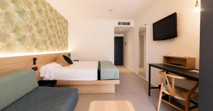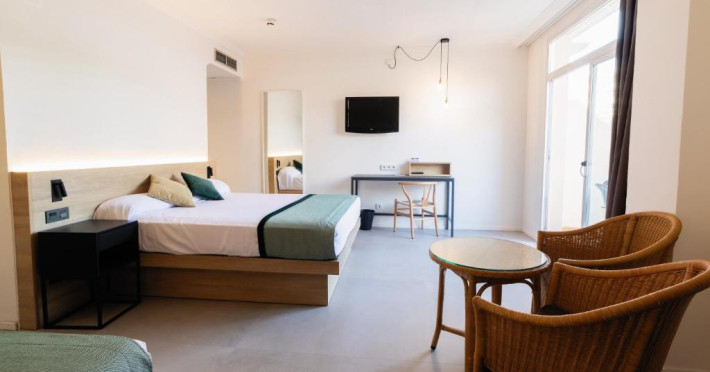 Camerele spațioase de la Palas Pineda sunt dotate cu TV cu ecran plat și aer condiționat. De asemenea, au un balcon mobilat.
