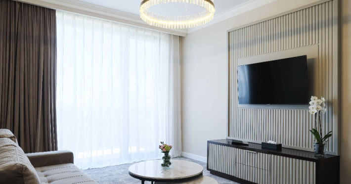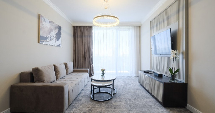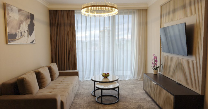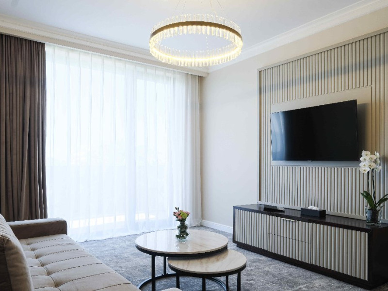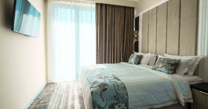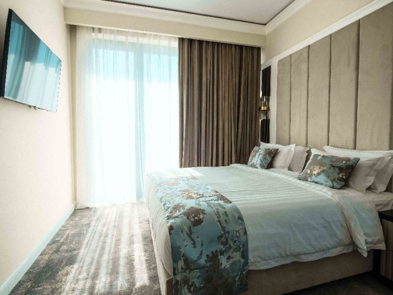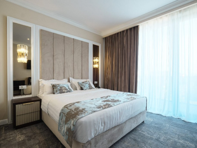 Apartament family Pentru un sejur la superlativ, comfortabil si spatios, alegeti apartamentul superior. 2 dormitoare cu baie proprie Spatiul: Apartamentele sunt spatioase, cu o suprafata de 69 metri patrati, si sunt mobilate cu un pat dublu, confortabil-king size, birou, living si dressing generos.