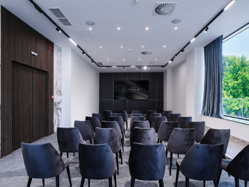 FACILITATI EVENIMENTE Sala de conferinte a hotelului este o alegere ideala pentru intalniri de afaceri, seminarii, prezentari sau chiar evenimente speciale precum nunti sau botezuri. Cu o capacitate de pana la 80 de locuri, aceasta este echipata cu cele mai noi tehnologii audio-vizuale si facilitati moderne, asigurand un mediu propice pentru intalniri productive si reusite.