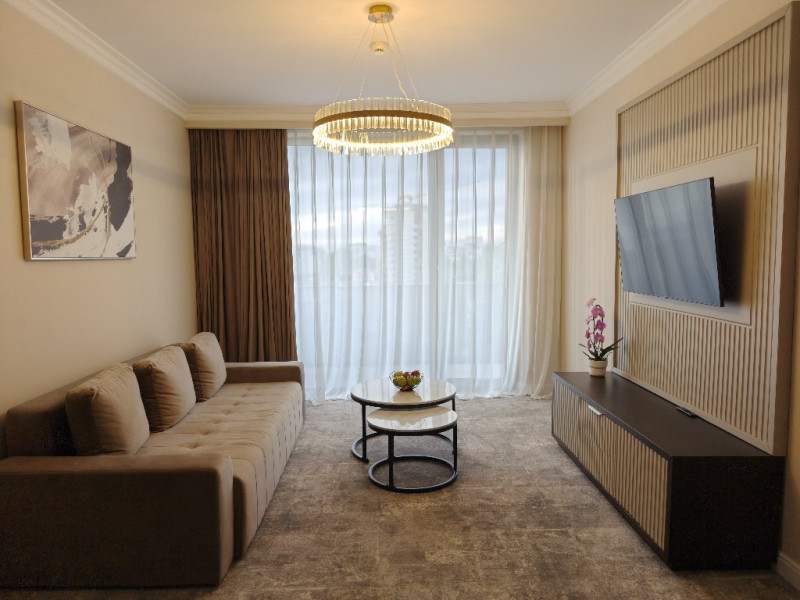 Apartament standard Apartamentele standard la Hotel Panoramic sunt spatioase, luminoase si ofera un confort la superlativ. Spatiul: Apartamentele sunt spatioase, cu o suprafata de 62 metri patrati, si sunt mobilate cu un pat dublu, confortabil-king size, canapea extensibila (160cm x 200cm), birou, living si dressing generos.