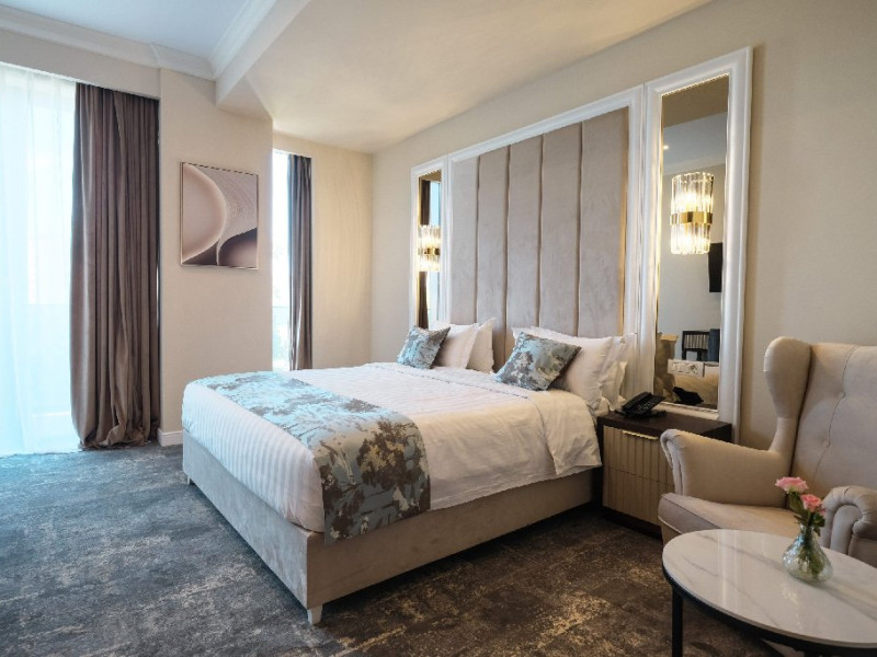 Camera dubla standard Spatiul: Camerele sunt spatioase, cu o suprafata de 32 metri patrati, si sunt mobilate cu un pat dublu, confortabil-king size si dressing generos.