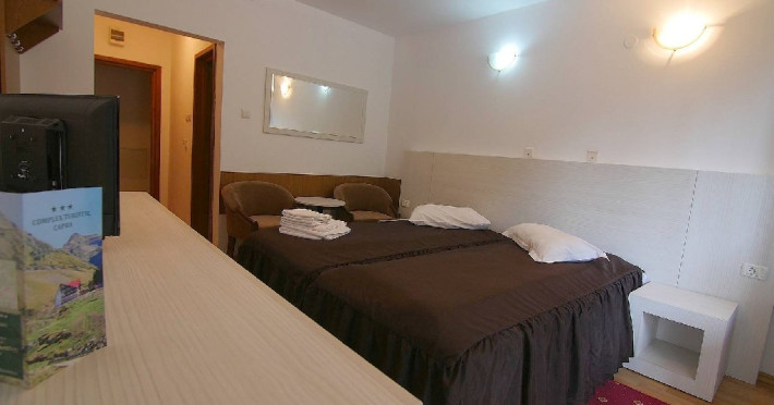 INFORMATII GENERALE Hotel Paraul Capra este situat la numai 9 km de lacul glaciar Balea si 50 m de DN 7C, Transfagarasan. DESCRIERE UNITATE DE CAZARE Complexul ofera multiple posibilitati pentru petrecerea timpului liber si pentru activitati de team-building. FACILITATI UNITATE Hotelul dispune de parcare, restaurant, terasa, loc de joaca pentru copii in exterior, biliard, tenis de masa, internet Wi-Fi in lobby si in restaurant, sala de conferinte. DESCRIERE CAMERE Camerele dispun de grup sanitar propriu, cabina de dus, televiziune prin cablu, incalzire. Unele camere dispun si de balcon. Apartamentul ofera un dormitor cu pat matrimonial si un living cu canapea extensibila. Cele doua incaperi nu au usa despartitoare. LOCALIZARE Hotel Paraul Capra este situat la numai 9 km de lacul glaciar Balea si 50 m de DN 7C, Transfagarasan. ATRACTII TURISTICE Transfagarasanul, Casa memoriala a compozitorului George Stephanescu, Manastirea Curtea de Arges, Biserica Domneasca (sec. XIV-XV), Complexul Muzeal Biserica Domneasca, Biserica Olari (sec. XVII), Cetatea Poienari (sec XV.), Barajul Vidraru, Monumentul Electricitatii. POLITICI Nu sunt permise animalele de companie. SERVICII DE MASA Hotelul dispune de restaurant (capacitate 60 locuri) si terasa (capacitate 60 locuri). FACILITATI COPII Loc de joaca exterior. FACILITATI EVENIMENTE Hotelul pune la dispozitia clientilor o sala de conferinte cu o capacitate de 30 de locuri, unde sunt puse la dispozitie un videoproiector si un flipchart.