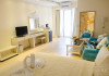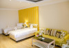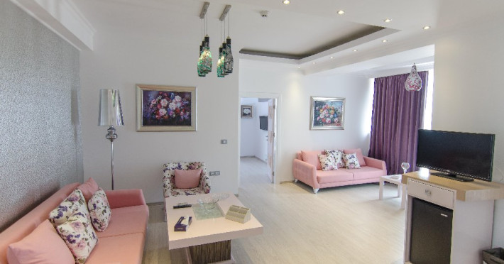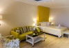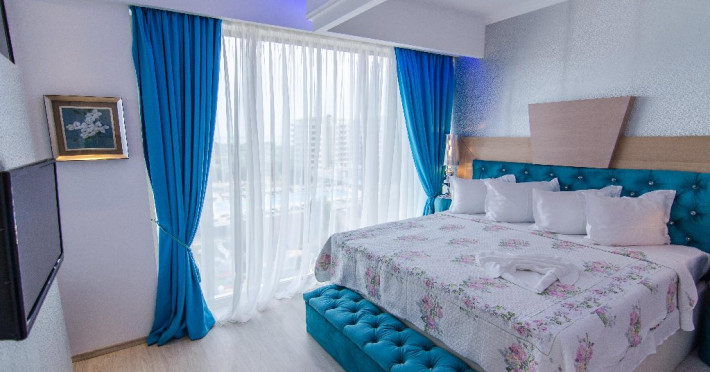 Camera dubla matrimoniala - cuprinde un spatiu deschis cu o suprafata de 45 mp, zona pentru dormit cu un pat matrimonial, canapea modulara, extensibila sau fixa, vedere laterala catre mare. Capacitate maxima: 2 adulti + 2 copii (0 - 11 ani) sau 3 adulti si un copil 0- 1 an;