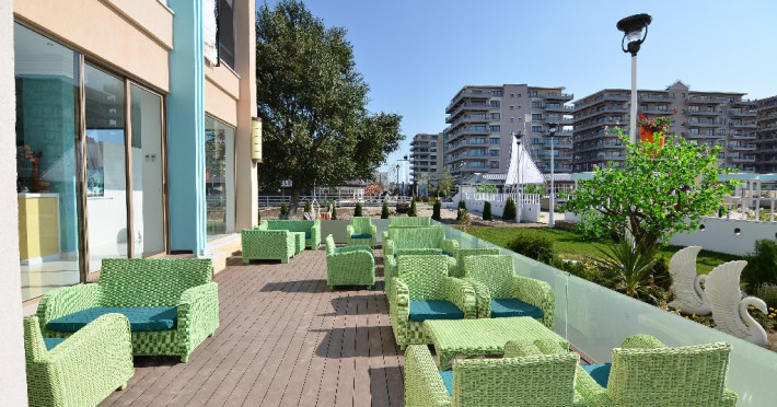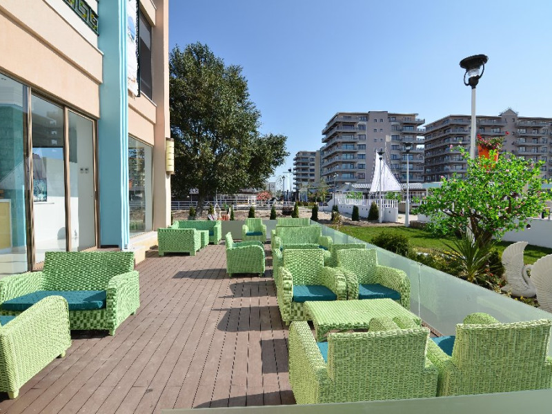 LOCALIZARE Hotelul este situat pe plaja. Plaja: larga nisipoasa cu intrare lina in mare. Completata cu nisip fin cernut si ingrijit permanent, plaja este amenajata cu umbrele si sezlonguri (atat pentru adulti cat si pentru copii) ce se afla permanent la dispozitia oaspetilor nostri, atmosfera fiind intretinuta cu grija pentru a oferi ore de plaja agreabile.