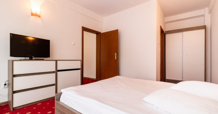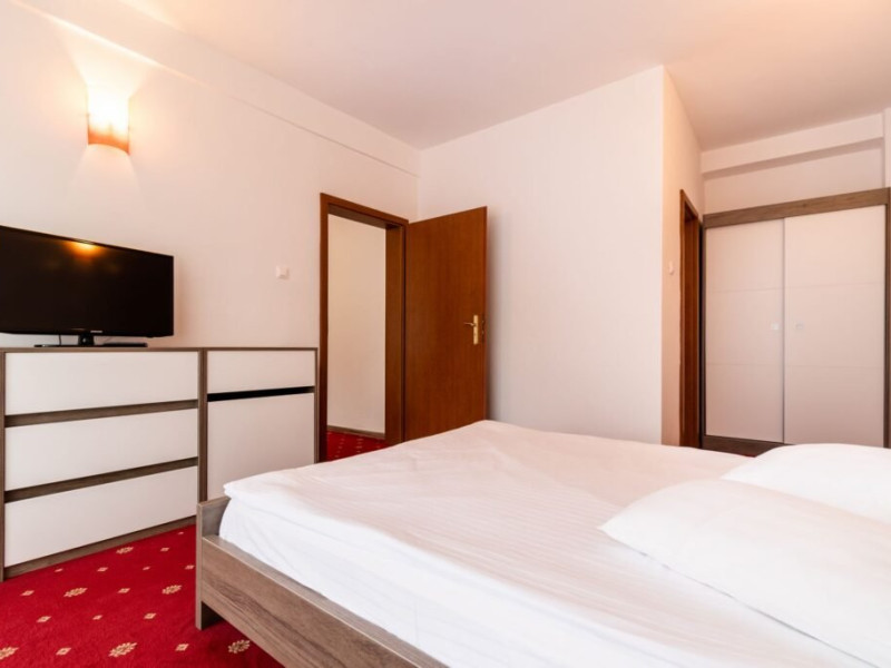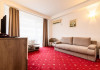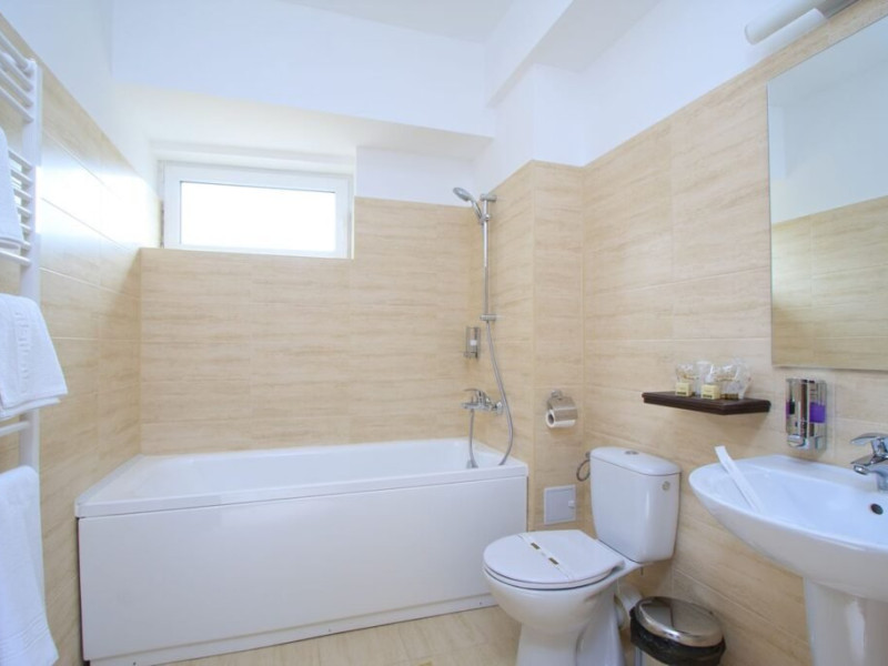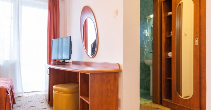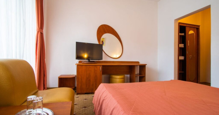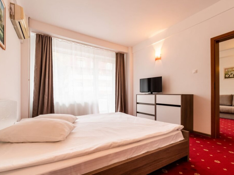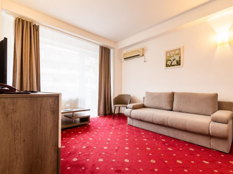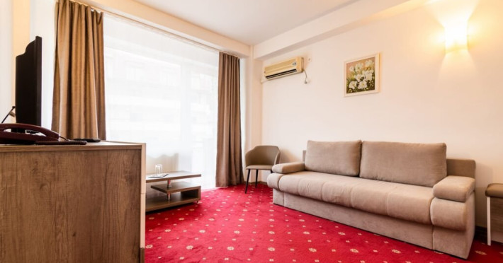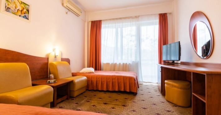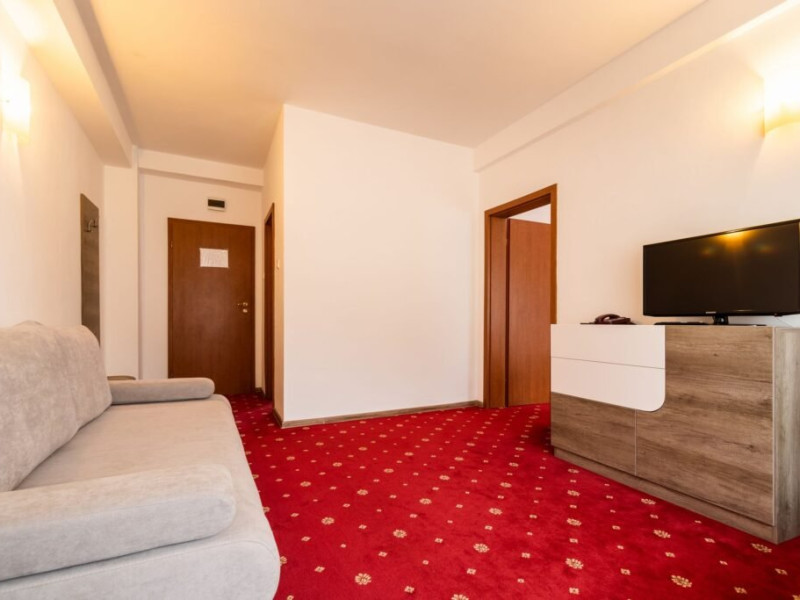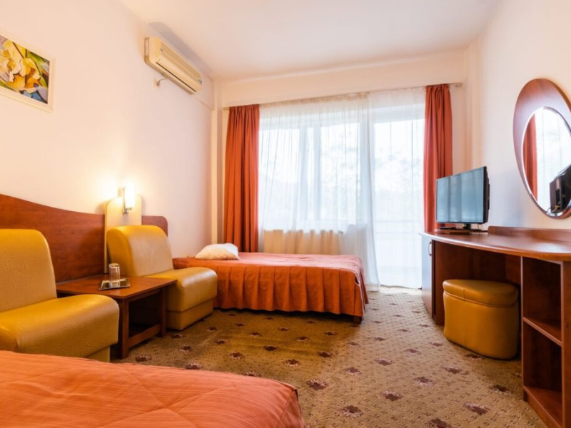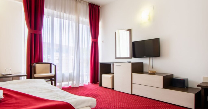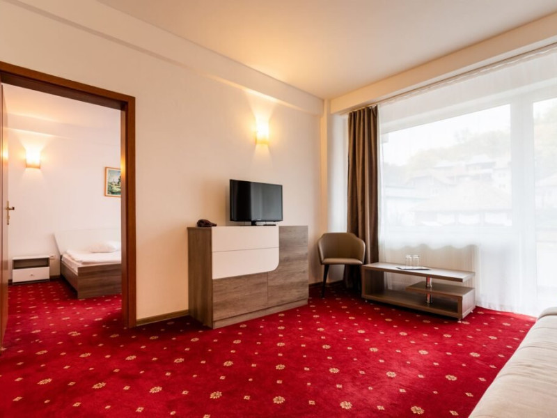 Baza de tratament vine in completarea curei cu ape minerale - tratamentul de baza din Baile Olanesti. Aceasta beneficiaza de echipamente moderne de tratament pentru fizioterapie, termoterapie si hidroterapie. Printre aparatele moderne de tratament din cadrul hotelului veti gasi: aparat unde scurte, aparat de terapie cu vacuum, aparat terapie leziuni - Deep oscillation personal, aparat pentru magnetoterapie, aparat de terapie cu laser - Lass Basic. DESCRIERE CAMERE Camerele standard sunt dotate cu un pat matrimonial sau doua paturi separate. Camerele deluxe sunt mai spatioase decat camerele standard si au in dotare un pat matrimonial. In aceste camere turistii pot regasi halate de baie. Apartamentele standard sunt dotate cu un dormitor cu pat matrimonial si un living cu o canapea extensibila 160*200 cm, baie cu cabina de dus. Apartamentul deluxe este compus dintr-un dormitor cu pat matrimonial si un living cu o canapea extensibila 160*200 cm, baie cu cada si dressing. Toate camerele au balcon si aer conditionat, grup sanitar propriu, TV, telefon, internet wireless, minibar, uscator de par. LOCALIZARE Hotelul este situat in statiunea Baile Olanesti la aproximativ 500 m de Parcul Central si Aleea Izvoarelor. ATRACTII TURISTICE Biserica Nicola Ursu - Horia, Parcul Central si Aleea Izvoarelor, Biserica Sfantul Pantelimon, Lacul cu Nuferi, satul Comanca, Satul Tisa si Schitul Bradu. POLITICI Pentru procedurile de tratament, turistii trebuie sa prezinte la hotel dovada de asigurat (adeverinta de la locul de munca sau cupon de pensie), card de sanatate si bilet de trimitere tip pentru servicii medicale in sistemul asigurarilor sociale de sanatate.