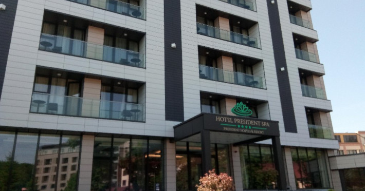 FACILITATI UNITATE: In cadrul acestui corp de hotel se ofera urmatoarele facilitati: parcare gratuita, lobby, Mini sala de conferinte de 50 locuri, centru SPA la etajul 1, unde gasim jacuzzi, saune, centru cosmetica, La parter se afla piscina interioara cu hidromasaj. In exterior se afla o piscina cu pool bar iar in sezon bazine cu topogane si jocuri acvatice pentru cei mici, zona de plaja cu sezlonguri. Corpul President SPA comunica printr-un pasaj incalzit cu Aqua Parkul President unde accesul este gratuit pentru cei cazati in acest corp. Accesul la restaurant se face tot printr-un tunel incalzit spre corpul Aqua President unde se afla restaurantul situat la etajul 1. Restaurantul dispune de o mica terasa.
