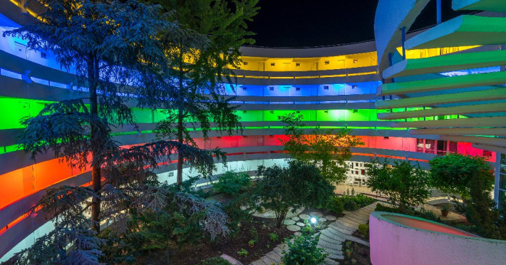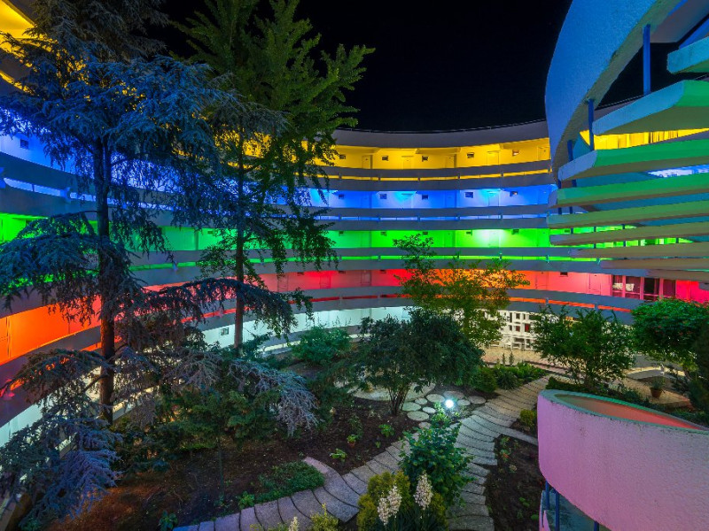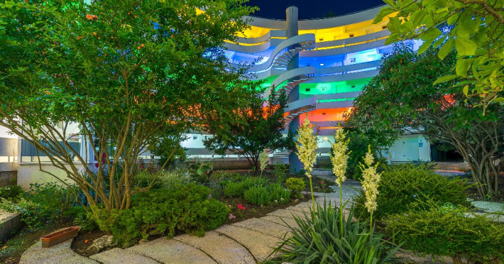 INFORMATII GENERALE Aflat in centrul statiunii Venus, la doar cateva minute de plaja, Hotel Raluca Venus are o arhitectura unica in Romania: o cladire circulara, cu 4 etaje, in mijlocul careia este amenajata o surprinzatoare gradina japoneza. Noaptea, fatada interioara a cladirii este inedit luminata, fiecare nivel avand o culoare distincta.