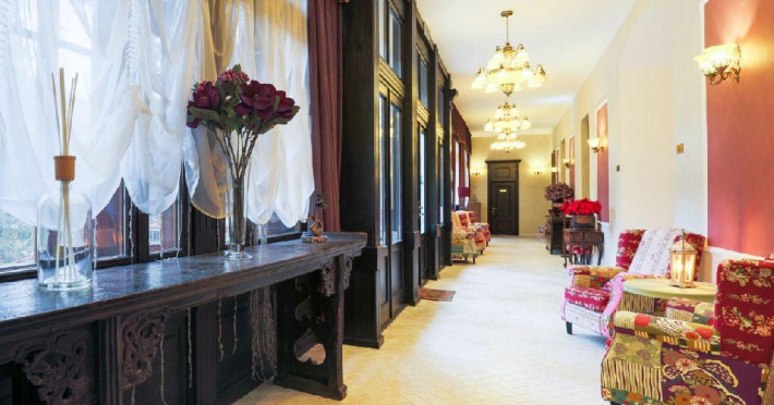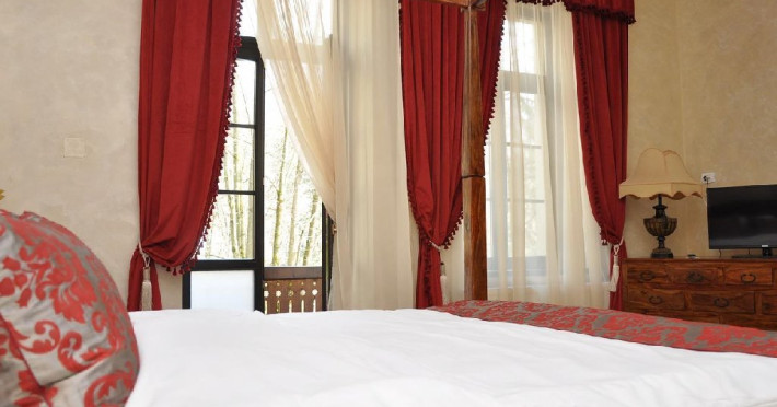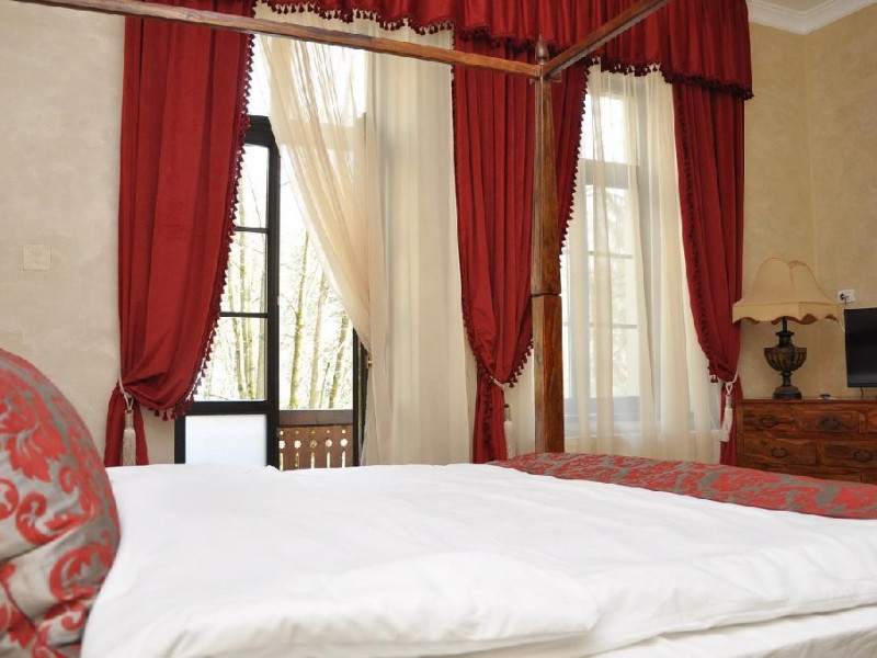 INFORMATII GENERALE Hotelul, prin design-ul de bun gust si originalitatea mobilierului, ofera turistilor sai un confort superior si oatmosfera regala. Fiind pozitionat in centrul statiunii Sinaia, chiar in Parcul Dimitrie Ghica, asigura acces facil catre statiune. DESCRIERE UNITATE DE CAZARE Camerele luminoase, moderne si generoase ca suprafata dispun de toate facilitatile unui sejur linistit: TV cu ecran plat cu canale prin cablu, baie privata cu dus sau cada si articole de toaleta gratuite, uscator de par in baie, conexiune wi-fi, sistem incalzire, unele camere au si o zona de relaxare. Oaspetii de la Regal 1880 se pot bucura de acces gratuit la internet WiFi, receptie cu program non stop, o gradina, parcare la o proprietate in apropiere. FACILITATI UNITATE Hotel Regal 1880 dispune de 6 apartamente, 6 camere duble deluxe, 6 camere duble standard si 1 camera single, acces gratuit la internet WiFi, receptie cu program nonstop, o gradina. DESCRIERE CAMERE Dotari spatii de cazare: TV/cablu, conexiune internet, frigider, sistem incalzire, baie proprie (cu dus sau cada), uscator de par in baie. Camerele NU dispun de balcon, iar majoritatea dispun de vedere spre parc. Garsoniera este compusa dintr-un dormitor si o zona partial separata (de relaxare, studiu sau divertisment) dotata cu o canapea extensibila, baie proprie, uscator de par in baie, articole de toaleta gratuite. Camerele duble deluxe sunt generoase ca suprafata si dispun de mobilier nou, TV/cablu, conexiune wi-fi, baie proprie cu cada, uscator de par in baie, articole de toaleta gratuite, vedere spre parc. Camerele duble standard la mansarda sunt mobilate modern si au in dotare TV/cablu, conexiune wi-fi, baie proprie, uscator de par in baie. Camera single la mansarda dispune de pat matrimonial, TV/cablu, conexiune wi-fi, baie proprie, uscator de par in baie, articole de toaleta gratuite. LOCALIZARE Hotelul este pozitionat in centrul statiunii Sinaia, chiar in Parcul Dimitrie Ghica, la aproximativ 350 metri de gara si 800 metri de Manastirea Sinaia. ATRACTII TURISTICE Castelul Foisor, Partiile de ski, Castelul Peles, Castelul Pelisor, Cazinoul Sinaia, Cota 2000, Cota 1400,Manastirea Sinaia, Casa memoriala George Enescu, Muzeul Trenuletelor, Muzeul Rezervatiei Bucegi, Poiana Stanii Regale, Gara Regala. POLITICI Nu sunt permise animalele de companie. SERVICII DE MASA Micul dejun se acorda in restaurantul hotelului Caraiman aflat la 150 metri de hotel sub forma de bufet si restul serviciilor de masa sub forma fisa cont.in restaurantul hotelului Palace aflat la 100 m de hotel. FACILITATI COPII Copiii mai mari de 6 ani se pot caza in garsoniera sau apartament. FACILITATI EVENIMENTE Locatia nu dispune de salon pentru evenimente.