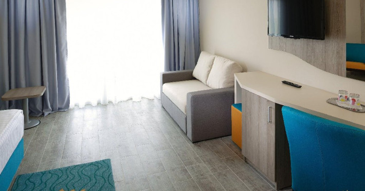 Seaview Apartament fara balcon - tip apartament - are vedere directa la mare, format din living cu canapea extensibila si chicineta si dormitor cu pat dublu matrimonial. Cele doua incaperi sunt separate de usa. Este situat la etajul 14 al hotelului nu detine balcon, insa camera are o suprafata utila mai mare cu suprafata balconului