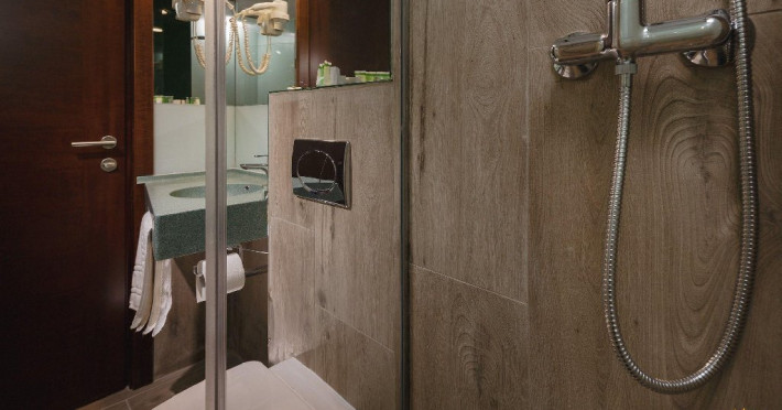 DESCRIERE CAMERE Dotari camere: minibar -produsele din minibar sunt contra cost; se achita o garantie in valoare de 100 lei/zi, baie cu dus -cabina de dus, internet -wireless gratuit, pat matrimonial (160/200 cm), birou, ferestre panoramice izolate fonic, din podea pana in tavan. Accesul in camere se face pe baza de carduri magnetice. Fumatul in camere este interzis.