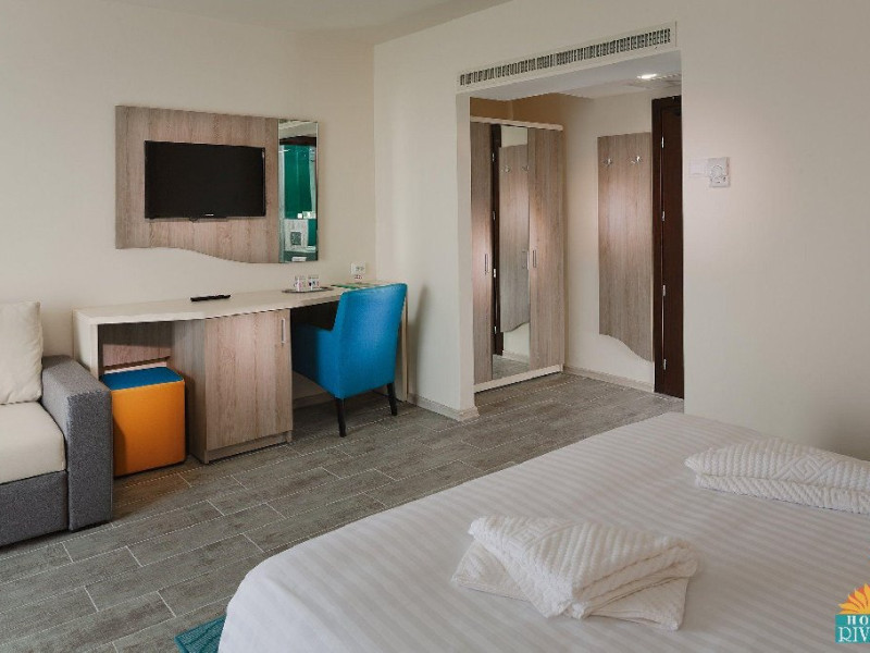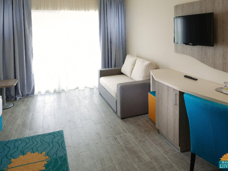 Family Studio fara balcon - camera tip garsoniera - are vedere laterala la mare, formata din doua incaperi ce nu sunt separate de usa. Detine un pat dublu matrimonial si o canapea extensibila chicineta. Localizata la etajul 14 al hotelului nu detine balcon, insa camera are o suprafata utila mai mare cu suprafata balconului si de asemenea are un tavan cu o inaltime mai mare (cca 3 m).