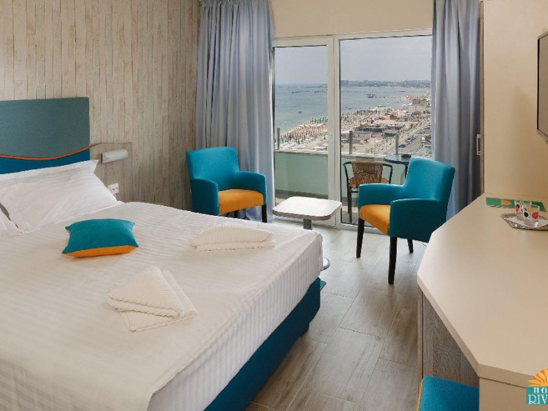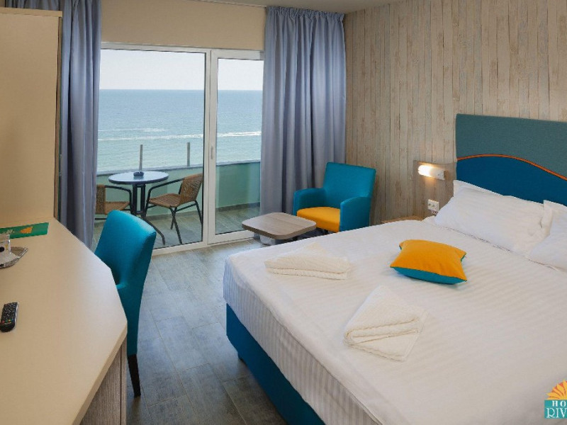INFORMATII GENERALE Hotel RIVIERA*** este cel mai inalt hotel de pe litoral avand 14 etaje ridicate la numai 20 metri de plaja si o vedere panoramica deosebita asupra Marii Negre si a lacului Siutghiol.