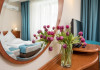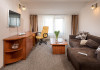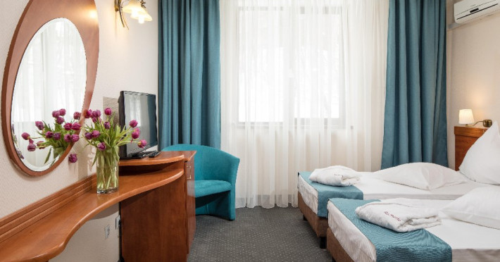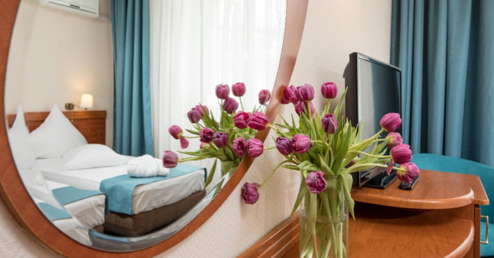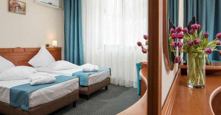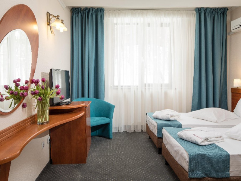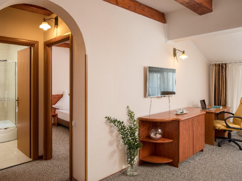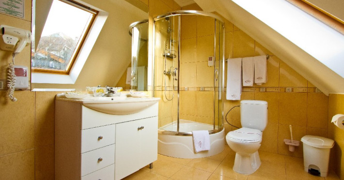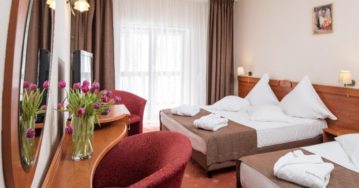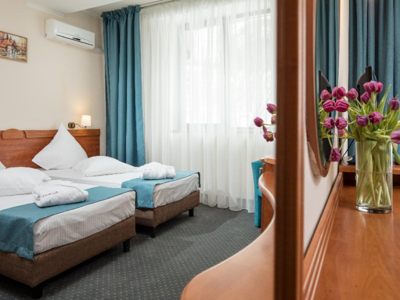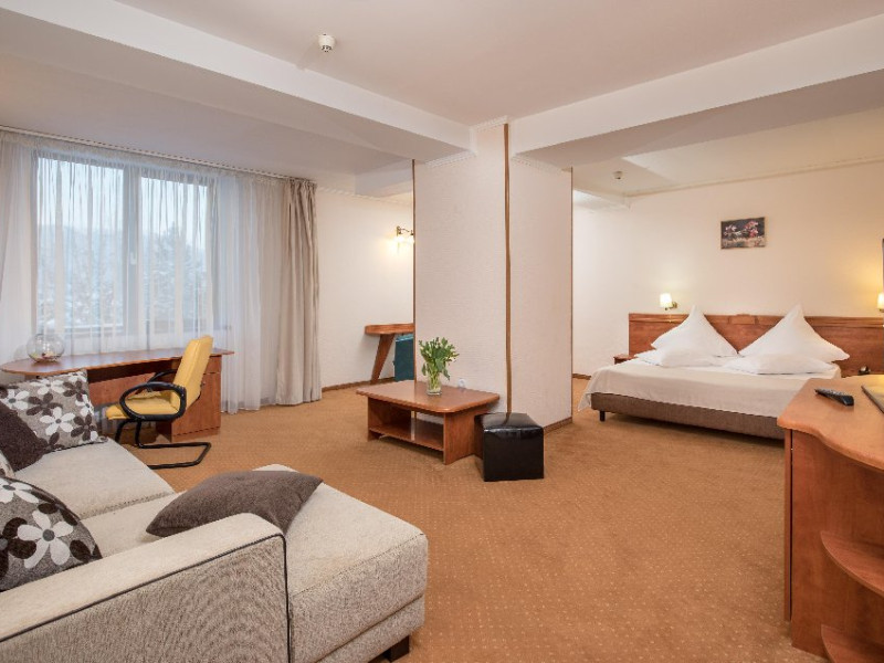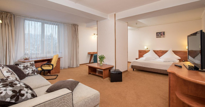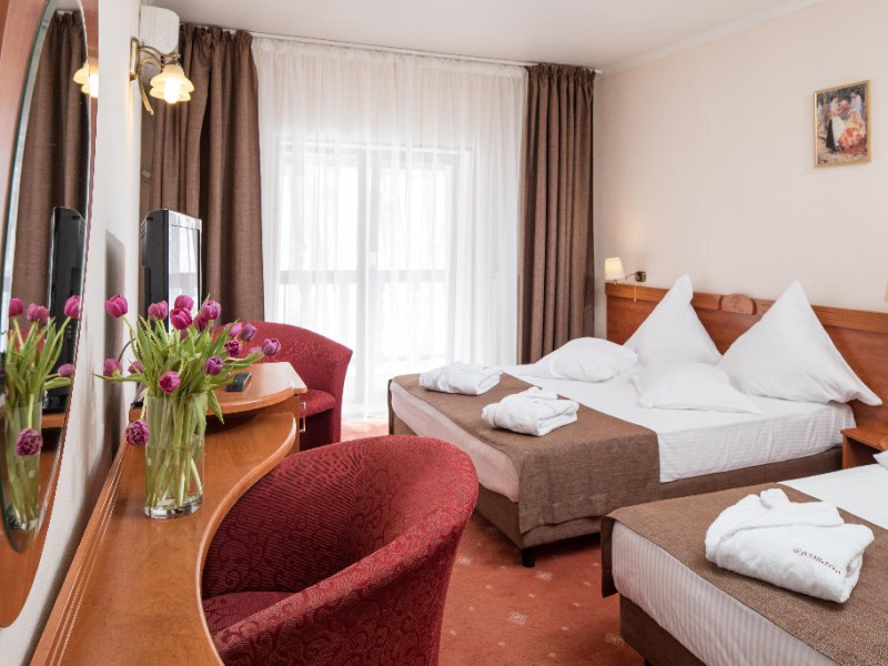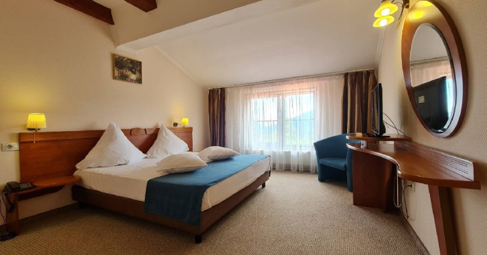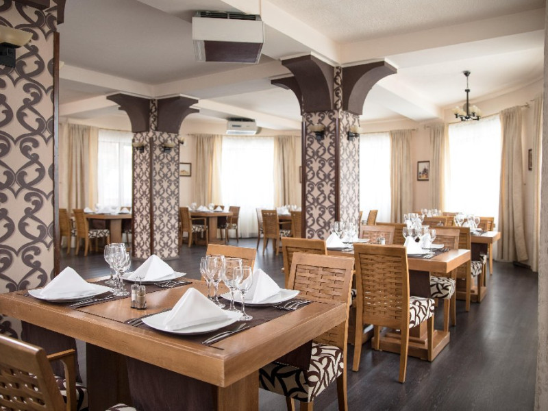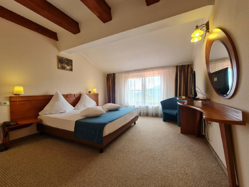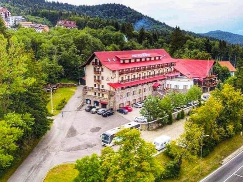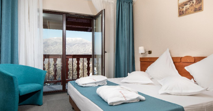INFORMATII GENERALE Complexul Hotelier Rozmarin din Predeal continua traditia serviciilor de calitate din turismul montan care a adus faima industriei hoteliere romanesti. Cadrul natural spectaculos, cu o vedere panoramica asupra vaii superioare a Timisului si asupra Masivelor Postavarul si Piatra Mare si consistenta produsului turistic, recomanda Complexul Hotelier Rozmarin din Predeal ca o destinatie pentru toate anotimpurile. DESCRIERE UNITATE DE CAZARE Gazda primitoare, o adevarata casa departe de casa pentru toti oaspetii sai, Hotel Rozmarin reprezinta alegerea ideala atat pentru turismul de recreere sau refacere cat si pentru cel de afaceri si conferinte. FACILITATI UNITATE Receptie non stop, bar, salon de mic dejun, restaurant 250 locuri, terasa, spatiu barbeque, crama, loc de joaca pentru copii (castel gonflabil, pictura, mingi, soccer, ping-pong), restaurant, lift, facilitate pentru persoane cu dizabilitati, camera pentru bagaje, seif la receptie, fitness centre, sauna, sali de conferinta, internet, parcare. DESCRIERE CAMERE TV, minibar, baie cu dus, balcon, internet, uscator de par, telefon, aer conditionat, sistem de incalzire. LOCALIZARE Hotel Rozmarin este situat la iesirea din orasul Predeal spre Brasov. ATRACTII TURISTICE Ascensiuni montane (Vf. Piatra Mare 1.843 m), Masivul Postavaru, Muntii Bucegi cu Vf. Omu (2.505 m), cascada Tamina, Pestera de Gheata; obiective istorice din Brasov, Sinaia, Rasnov, Castelul Bran, Castelul Pelis si Pelisor, Castelul Cantacuzino, Muzeul Trenurilor (Sinaia). POLITICI Animalele de companie sunt permise contra cost. SERVICII DE MASA Se acorda in restaurant Rozmarin, organizat pe doua etaje (cu un spatiu central comun ce permite comunicare vizuala intre cele doua etaje),cu iesire catre terasa ce ofera privelistea muntilor. De asemenea restaurantul dispune de un spatiu de barbeque menit sa redea o atmosfera specific romaneasca. FACILITATI COPII Loc de joaca pentru copii (castel gonflabil, pictura, mingi, soccer, ping-pong). FACILITATI EVENIMENTE Hotelul dispune de 3 sali de conferinta. Dotari: capacitati intre 20 si 120 depersoane, internet wireless, flipchart, consumabile, tv si video, ecran de proiectie, laptop, videoproiector, spatii speciale pentru pauza de cafea.