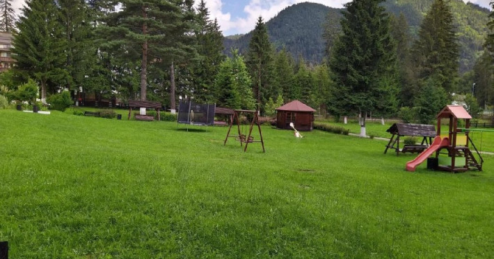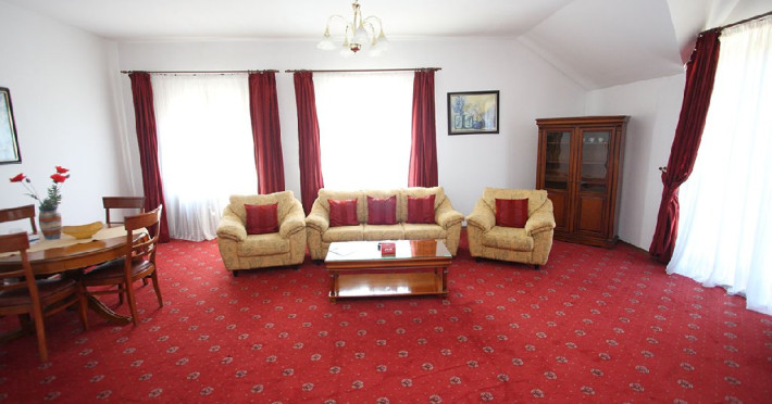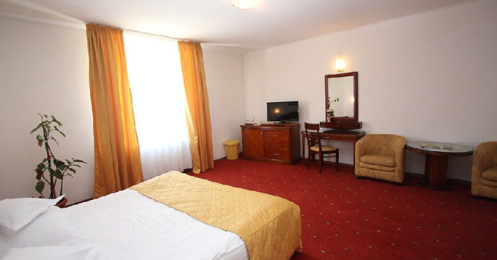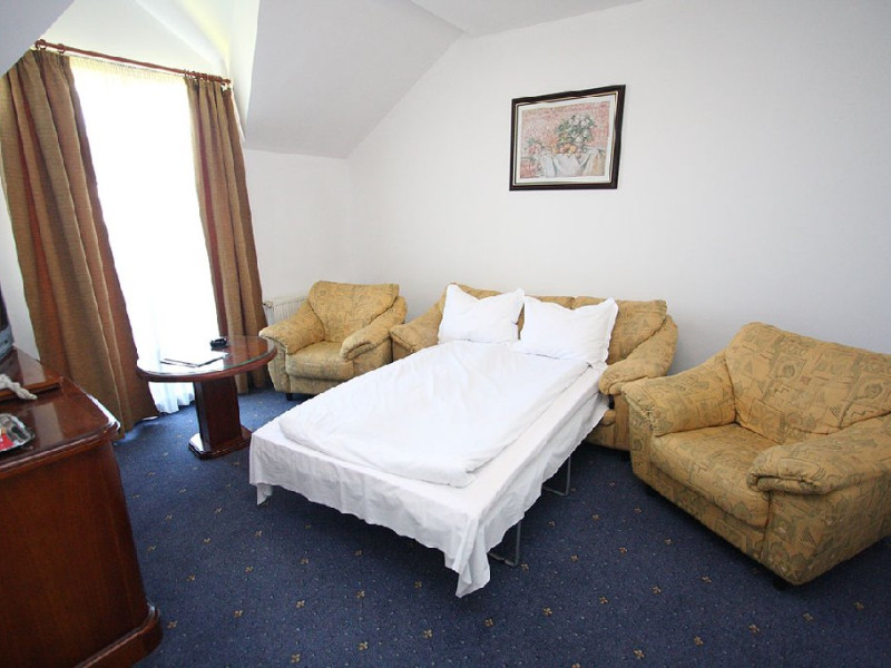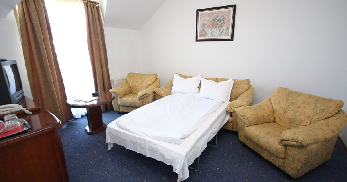 INFORMATII GENERALE Hotel Ruia se afla in statiunea montana Poiana Brasov la aproximativ 600 m de cea mai apropiata partie de schi. FACILITATI UNITATE Hotelul dispune de parcare, restaurant cu terasa, bar, internet Wi-Fi, servicii de masaj, sauna si sala fitness. DESCRIERE CAMERE Camerele duble dispun de doua paturi twin. La cerere acestea se pot apropia, iar cu ajutorul unui topper se pot transforma in pat dublu. Suitele sunt formate din dormitor cu pat matrimonial si living cu canapea extensibila. Toate camerele sunt dotate cu grup sanitar propriu, TV, minibar. LOCALIZARE Hotel Ruia se afla in statiunea montana Poiana Brasov la aproximativ 600 m de cea mai apropiata partie de schi. ATRACTII TURISTICE Castelul Bran, Castelul Peles, Cetatea Rasnov, Biserica Neagra. SERVICII DE MASA Mesele se servesc in restaurantul propriu. FACILITATI COPII Hotelul dispune de loc de joaca exterior. FACILITATI EVENIMENTE Hotelul dispune de o sala de conferinte de aproximativ 40 locuri.
