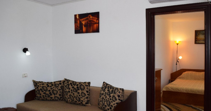 Apartamente: 2 (au un dormitor cu pat matrimonial si un living cu canapea extensibila, aer conditionat, frigider, 2 TV plat, o singura baie, nu au balcon).