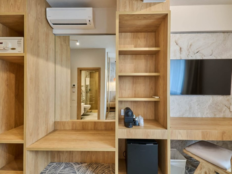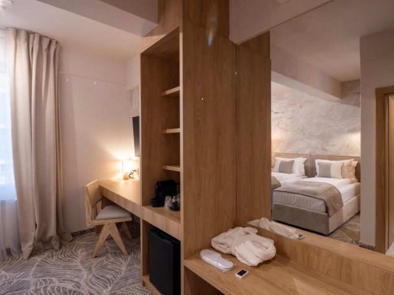 DESCRIERE UNITATE DE CAZARE Cele 49 de camere ale hotelului sunt dotate cu baie cu dus, cosmetice Rituals, halate de baie, papuci, uscator de par, minibar, seif, espressor cafea, televizoare inteligente Samsung 4K 128 cm, precum si conexiune WIFI de inalta viteza.