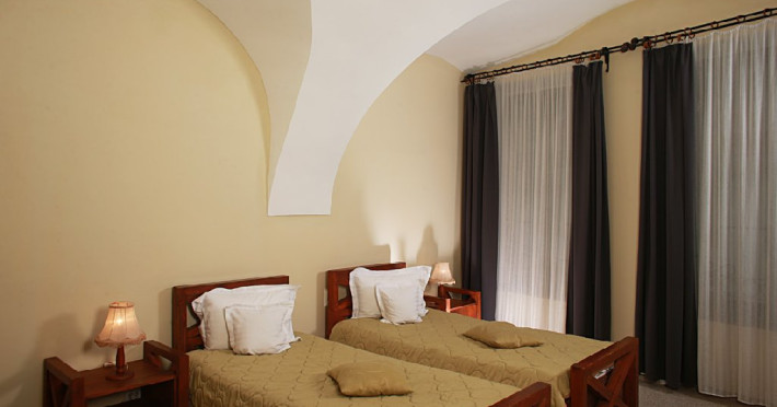 DESCRIERE CAMERE Dotari camere: TV, minibar, baie cu dus, internet, telefon. Tipuri de camere: duble: 29 - 17 camere cu 2 paturi si 12 camere cu pat matrimonial; 2 camere au si sofa extensibila pentru 2 persoane; apartamente: 3 - tip suita, cu sofa extensibila pentru 2 persoane.