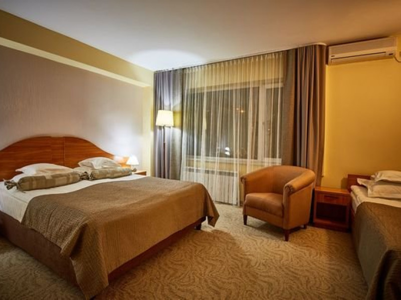INFORMATII GENERALE Hotelul Sinaia este situat central, pe strada principala a pitorestii statiuni montane din orasul Sinaia, judetul Prahova DESCRIERE UNITATE DE CAZARE Puteti descoperi ospitalitatea Hotelului Sinaia, unde sunt pregatite experiente culinare de exceptie, de la cocktailuri moderne pana la delicioase preparate traditionale romanesti si internationale. Lasati-va rasfatati si relaxati la Silena Mountain Spa, zona de wellness, si bucurati-va de confortul camerelor confortabile. FACILITATI UNITATE Hotelul pune la dispozitia turistilor parcare (contra cost), lift, restaurant, piscina interioara, sauna, jacuzzi, sala de fitness, masaj, loc de joaca pentru copii, internet Wi-Fi, sali de conferinte. Accesul gratuit la piscina este disponibil intre orele 9:00 si 18:00, cu rezervare prealabila. Pentru a crea o atmosfera de seara senina si placuta, accesul intre orele 18:00 si 20:00 necesita o taxa si rezervare prealabila. Seara accesul este permis exclusiv pentru adulti de la 20:00 la 21:00 si de la 20:00 la 22:00 in weekend, accesul este disponibil cu taxa si rezervare prealabila. DESCRIERE CAMERE Camera dubla economy FARA balcon. ofera un spatiu decorat traditional, simplu dar confortabil pentru un somn minunat. Perfect pentru doi, spatios pentru unul. Camera dubla standard CU sau FARA balcon este ideala pentru o escapada romantica sau o calatorie de afaceri. Sunt disponibile un pat king-size sau doua paturi twin. Camera dubla deluxe CU sau FARA balcon este confortabila, spatioasa si pune la dispozitie un decor luxos si modern. Camera tripla FARA balcon ofera un pat matrimonial si un pat de o persoana, ambele dotate cu saltele confortabile. Camera tripla deluxe FARA balcon un pat matrimonial si un pat de o persoana este spatioasa, fiind conceputa pentru a le permite oaspetilor sa experimenteze luxul modern, confortul si relaxarea completa. Junior Suite CU balcon, un dormitor si living cu canapea extensibila este dedicata vacantelor de familie sau calatoriilor de afaceri, oferind un spatiu amplu de dormit si socializare. Suita Family Deluxe FARA balcon este formata din doua camere separte printr-o usa glisanta, o camera cu pat matrimonial si un pat de o persoana si o camera cu doua paturi separate care nu pot fi unite, este renovata la cele mai inalte standarde in materie de confort, decor si lux, fiind ideala pentru familii. Suita cu doua dormitoare FARA balcon este formata din doua camere interconectate printr-o usa si este decorata traditional, fiind o optiune excelenta pentru o familie cu copii mai mari sau un grup de prieteni. Camerele ofera aer conditionat, baie proprie cu uscator de par, TV, minibar, internet Wi-Fi. LOCALIZARE Hotelul Sinaia este situat central, pe strada principala a pitorestii statiuni montane din orasul Sinaia, judetul Prahova. ATRACTII TURISTICE Muzeul Peles, Pelisor, Manastirea Sinaia, Muzeul Bucegi, Cazinoul Sinaia, Casa Memoriala George Enescu. POLITICI Nu se accepta animale de companie. SERVICII DE MASA Mesele se servesc in restaurantul propriu. FACILITATI COPII Copiii mai mari de 6 ani se pot caza in camera tripla sau suita. FACILITATI EVENIMENTE Bucegi Modular - 80 persoane Bucegi Large - 160 persoane Bucegi Hall - 240 persoane Forest Small - 21 persoane Forest Medium - 35 persoane Forest Large - 56 persoane.