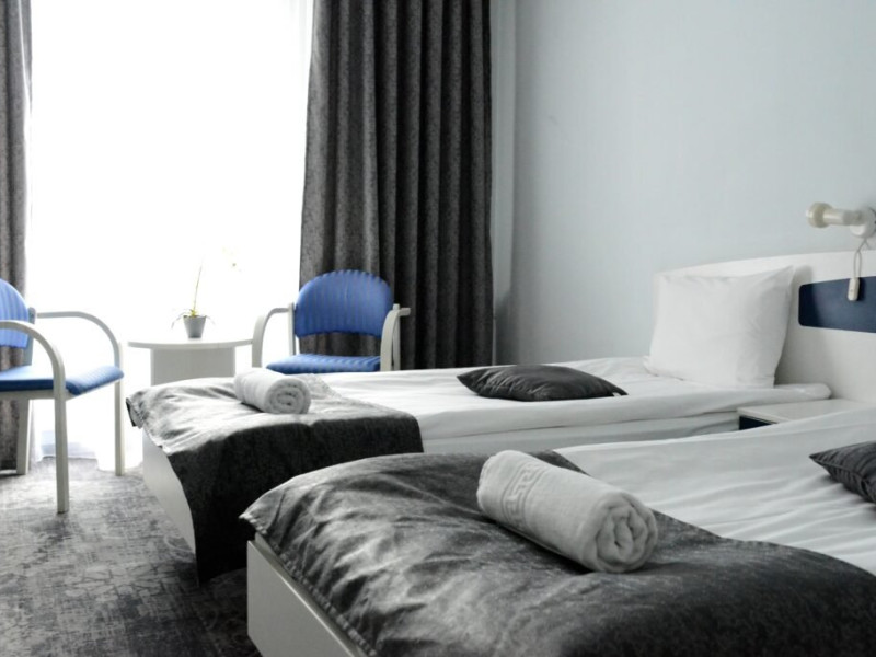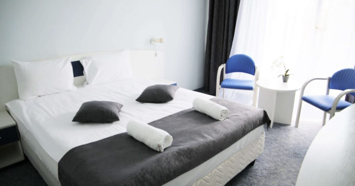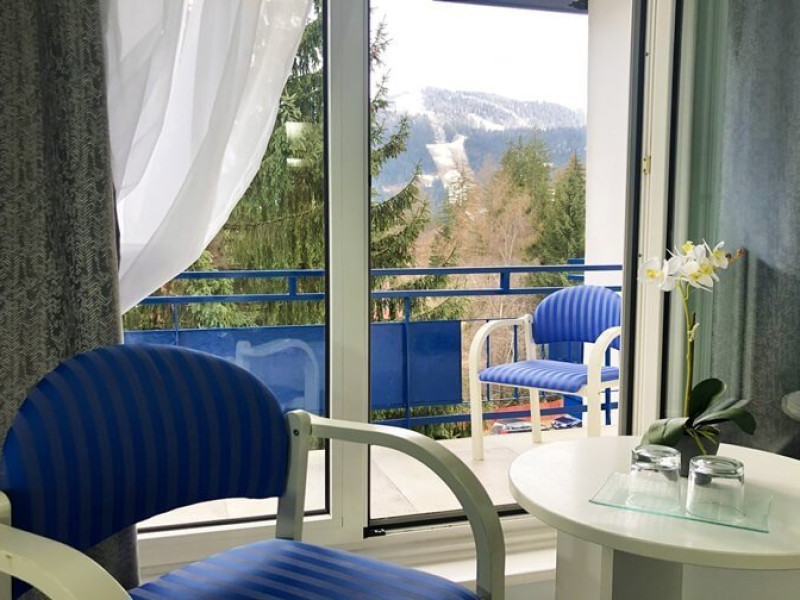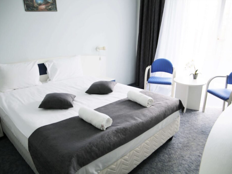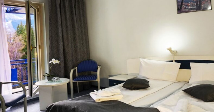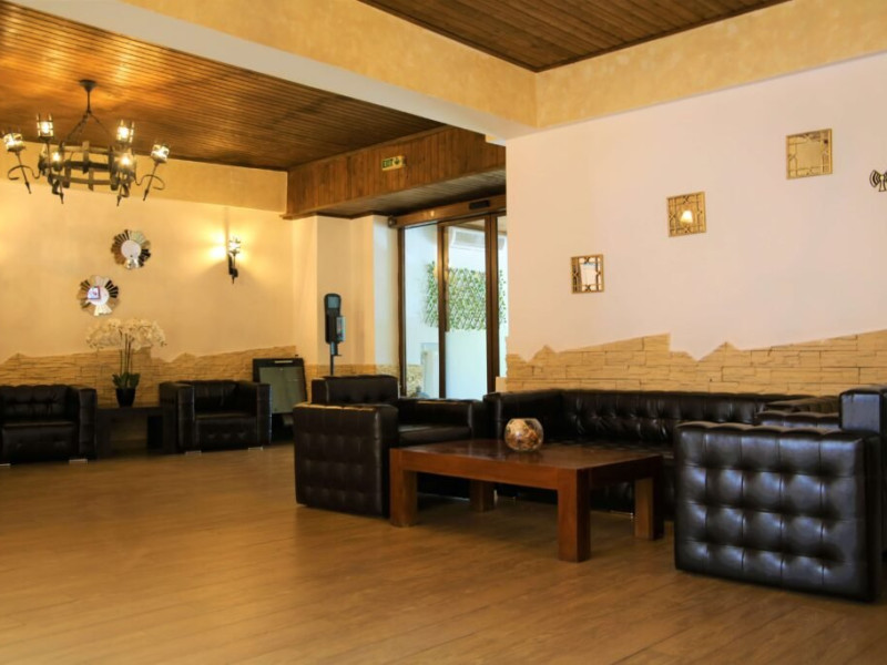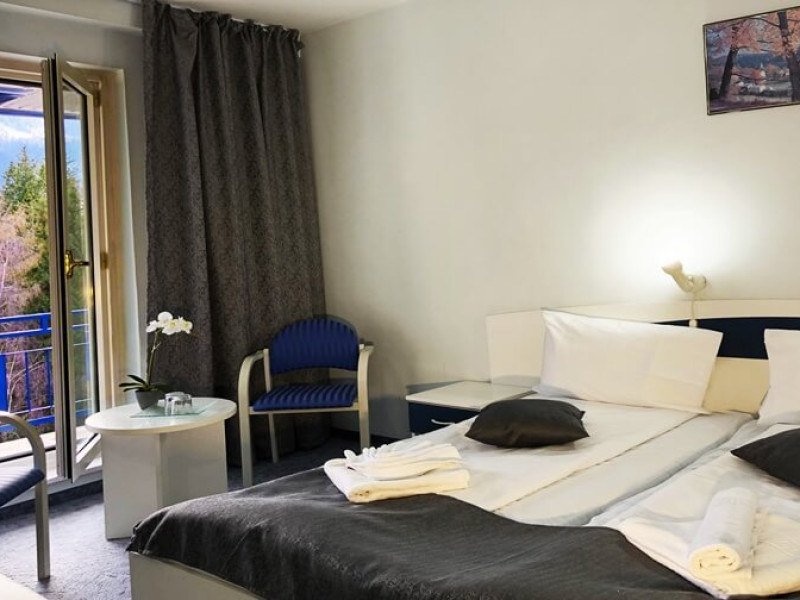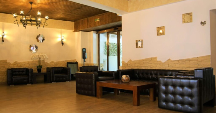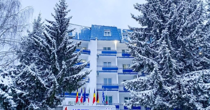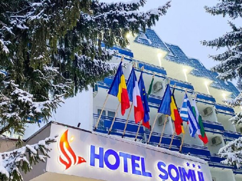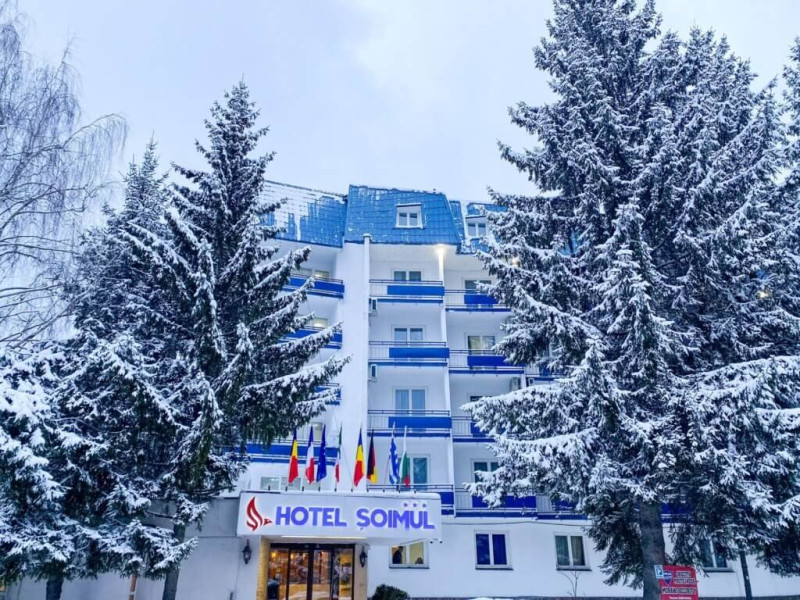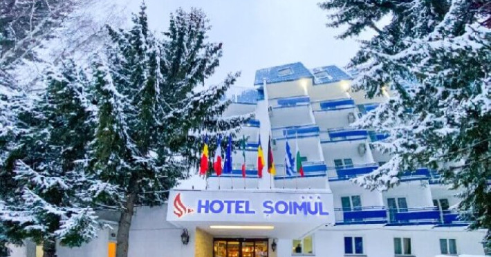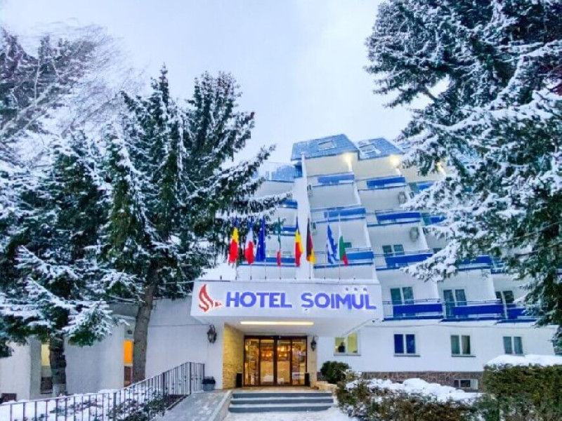 INFORMATII GENERALE Hotel Soimul se afla in statiunea Poiana Brasov la o altitudine de 1030 m, foarte aproape de partiile de schi si de traseele montane. DESCRIERE UNITATE DE CAZARE Descoperiti o oaza de linistei in inima naturii, unde rafinamentul intalneste peisajele spectaculoase ale Poienii Brasov. FACILITATI UNITATE Hotelul dispune de parcare proprie, restaurant cu terasa, Lobby Bar, sauna, sala de fitness, loc de joaca exterior. DESCRIERE CAMERE Camerele duble fara balcon dispun de un pat matrimonial sau doua paturi twin. Cele matrimoniale se afla la etajul 5, iar cele twin se gasesc si la parter. Camere duble cu balcon dispun de un pat matrimonial sau doua paturi twin. Printre dotarile camerelor se numara: baie proprie, TV, Wi-Fi. LOCALIZARE Hotel Soimul se afla in statiunea Poiana Brasov la o altitudine de 1030 m, foarte aproape de partiile de schi si de traseele montane. ATRACTII TURISTICE Masivul Postavaru, Muntele Tampa, Canionul Sapte Scari, Biserica Neagra, Pietrele lui Solomon. POLITICI Nu se accepta animale de companie. SERVICII DE MASA Restaurantul Bavaria are o capacitate de pana la 250 locuri si serveste preparate romanesti dar si internationale. Turistii se pot bucura de bauturi variate in Lobby Bar sau pe terasa. FACILITATI COPII Loc de joaca exterior. FACILITATI EVENIMENTE Hotelul dispune de trei sali de conferinte.