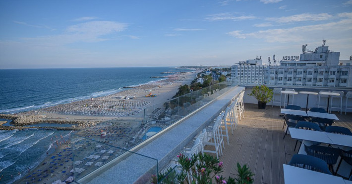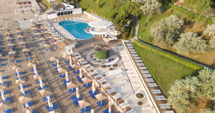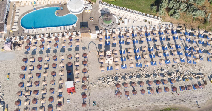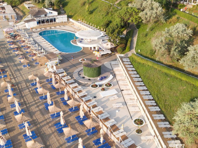 LOCALIZARE Situat la numai 100 de metri de noua plaja largita, complexul dispune de plaja proprie cu sezlonguri si umbrele de plaja.