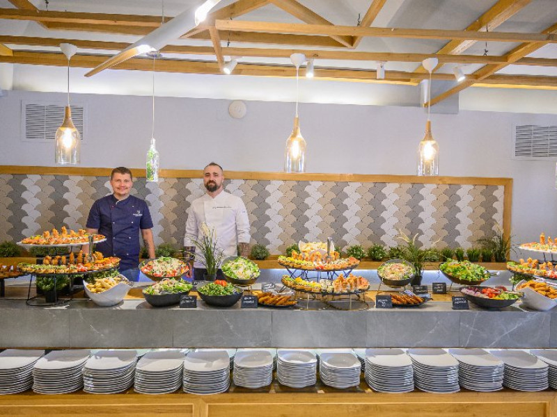 SERVICII MASA Facilitati oferite pentru pentru All Inclusive STANDARD (AI STANDARD): 3 mese in sistem open Buffet. In timpul meselor se servesc bauturi racoritoare, apa plata si carbogazoasa precum si bere/ vin/ bauturi alcoolice la pranz si cina; Bauturi non alcoolice, cafea si bauturi alcoolice (bere,vin) la plaja special amenajata; Minibar in camera alimentat o data pe zi; Acces la snacks si barul cu autoservire special amenajat la parter; Acces la locurile de joaca interioare /exterioare din cadrul complexului; Acces la programele de divertisment pentru copii conform orarului afisat in receptii, precum si la locatia de divertisment de pe plaja; LIVE BAND/ Entertainment in fiecare seara la Piscina din fata complexului bauturi racoritoare, bere si vin conform orarului afisat in receptii; Proiectii in aer liber la Plaja Steaua de Mare; Internet wi-fi gratuit; 2 Sezlonguri per camera dubla la plaja privata sau piscina orice pat suplimentar beneficiaza gratuit de 1 sezlong la plaja. Orice apartament beneficiaza de 3 sezlonguri la plaja. Prosoape de plaja; Sezlonguri BRONZE la Plaja Subsector 2; Sezlonguri la Plaja Subsector 1; Facilitati suplimentare oferite pentru pentru All Inclusive SUPERIOR (AI SUPERIOR): Acces la Evening Drinks Coktails la SKY Bar pe baza unei rezervari Acces Circuit Aqvatonic (1 sedinta de 120 minute). Terapia include un traseu complet AQVATONIC cu masaje subacvale cu jeturi de apa, aer sau apa-aer, masaje cervicale si mers contra-curent.