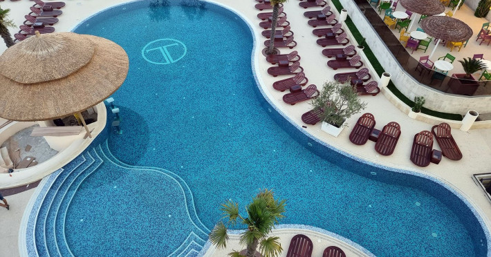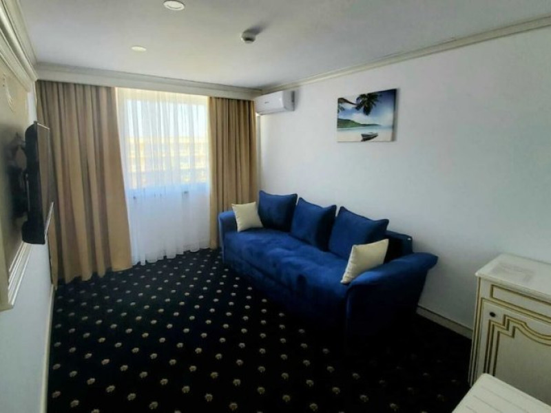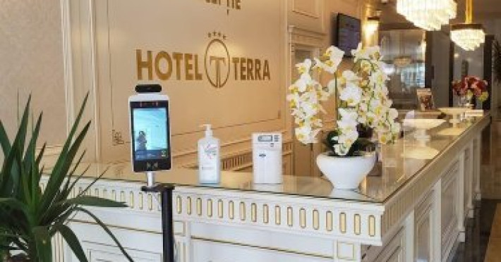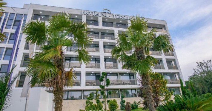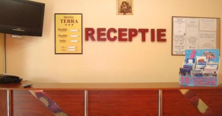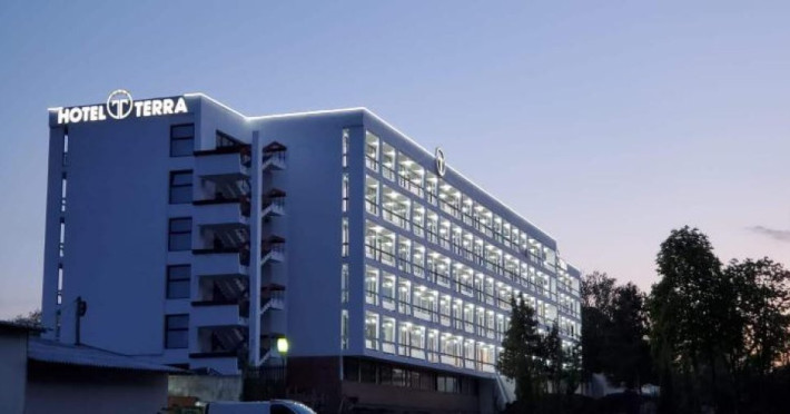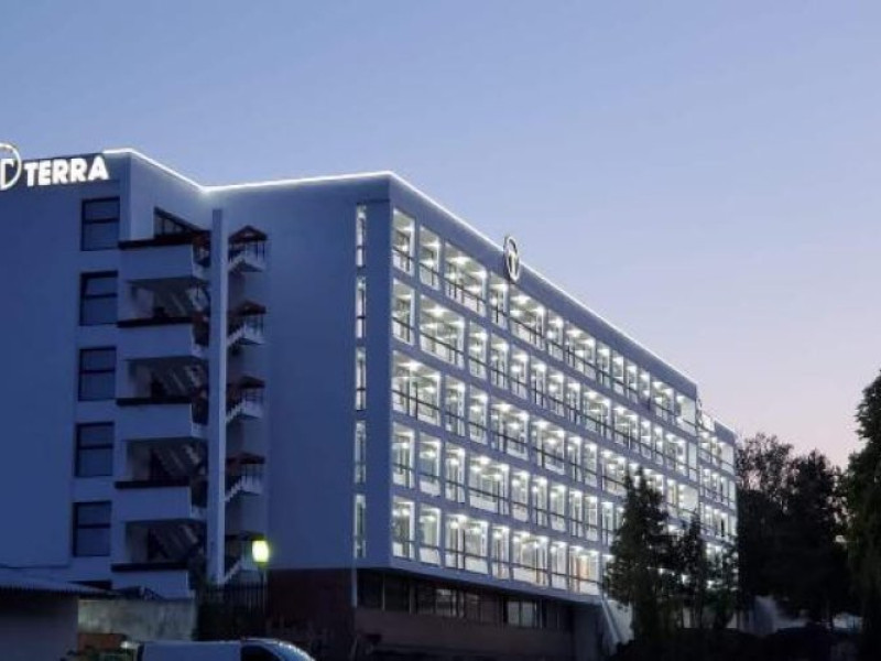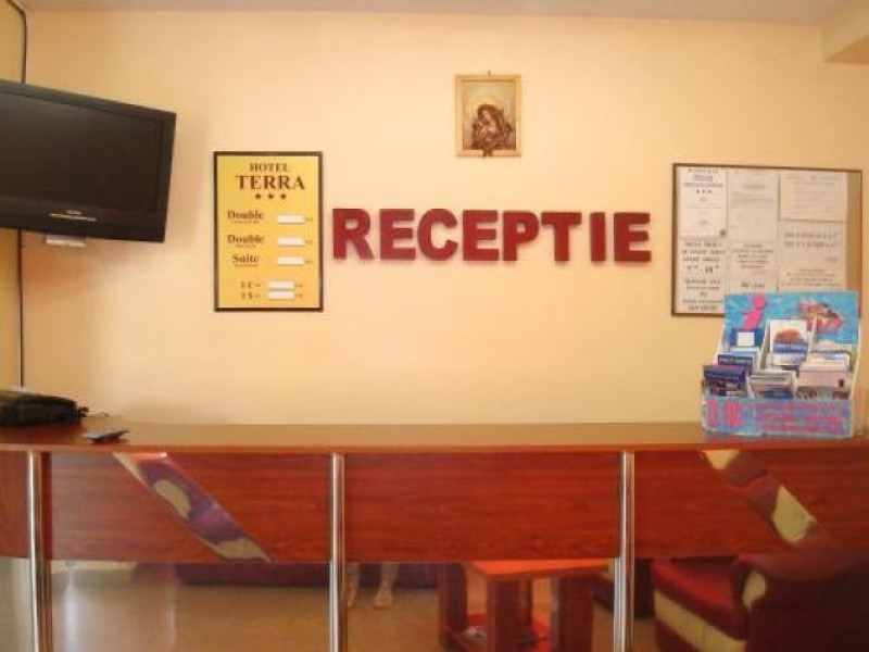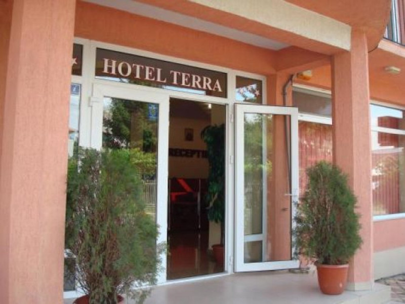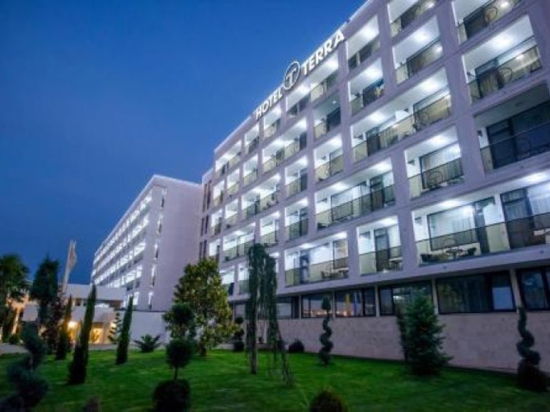 Pozitionat in centrul statiunii Neptun, la doar 200 metri de Gara Neptun si 800 metri de plaja, Hotel Terra este alegerea ideala pentru o vacanta relaxanta la malul Marii Negre. Hotel Terra este amplasat in imediata apropiere a parcului natural Paradise Land â cel mai mare complex de aventura de pe litoralul romanesc. Renovat complet in 2020, Hotel Terra isi asteapta oaspetii cu 300 de camere duble si 7 apartamente elegante, mobilate cu gust. Toate camerele Hotel Terra dispun de aer conditionat, minibar, seif, telefon, televizor cu ecran plat, canale TV prin cablu si bai proprii cu dus si uscator de par. Camerele de la etajele superioare au si balcon care ofera imagini impresionante ale Marii Negre. Hotelul are camere duble, unde se pot caza 2 adulti si 2 copii - pana in 14 ani (1 copil in pat cu parintii, unul in pat suplimentar pliabil), 2 adulti si 1 copil sau 3 adulti (cu pat suplimentar pliabil). Spatiul ramas disponibil in camera dupa instalarea patului suplimentar este foarte mic. Internet wireless de mare viteza este disponibil gratuit in camere si in toate spatiile publice ale Hotel Terra. Hotel Terra pune la dispozitia oaspetilor sai un restaurant a la carte, un bar de zi, terase exterioare, o piscina exterioara potrivita si pentru adulti si pentru copii, un loc de joaca pentru copii frumos amenajat si multe spatii de relaxare. Oaspetii Hotel Terra beneficiaza de parcarea hotelului gratuit.