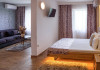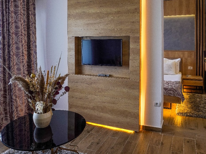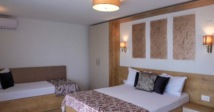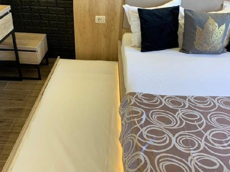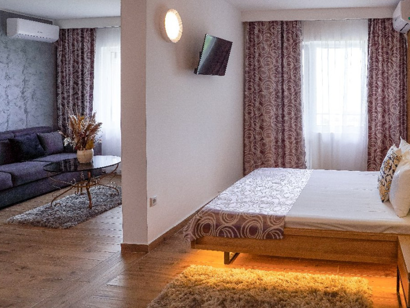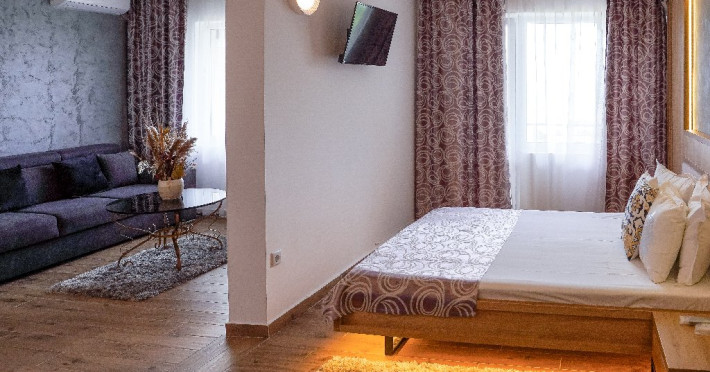 FACILITATI COPII CAMERA DUBLA- capacitate maxima 2 adulti si 2 copii: 1 copil 0-6 ani + 1 copil 0- 13 ani Peste 14 ani se va considera adult. Intr- camera dubla este un singur pat suplimentar, de tip pull-out, incorporat in patul matrimonial, iar dimensiunea este de 80/170 cm.
