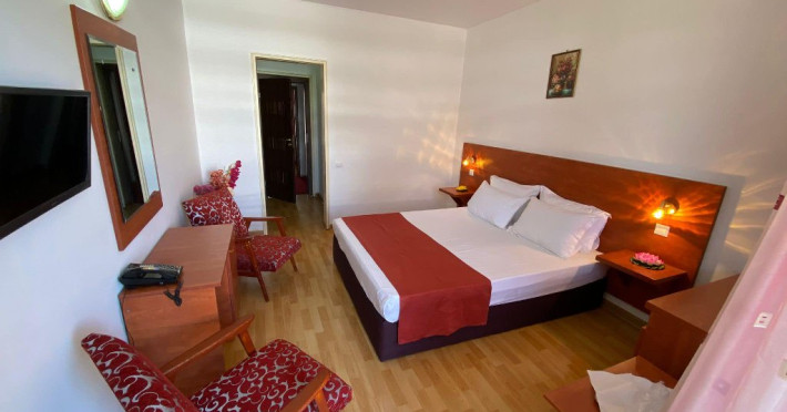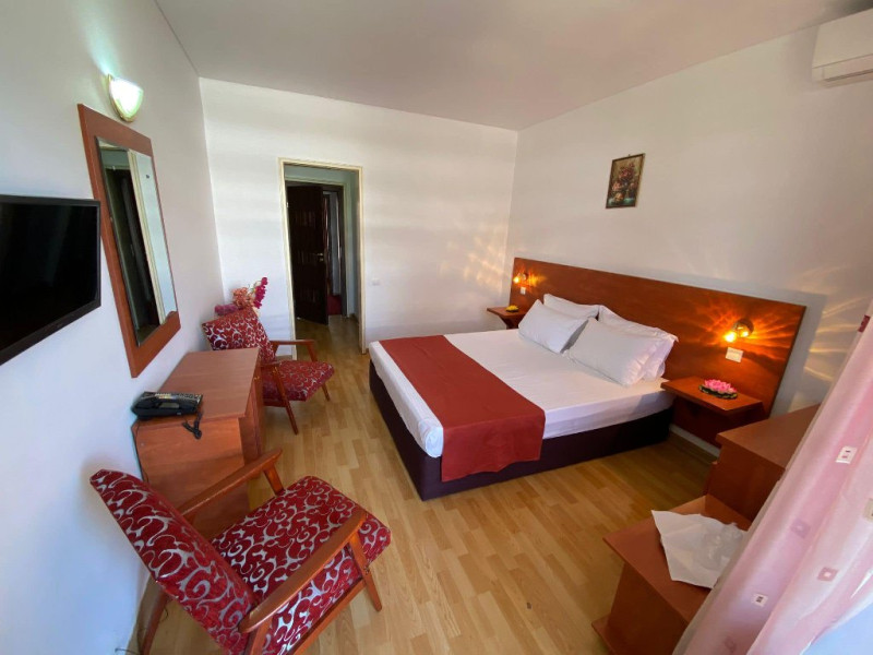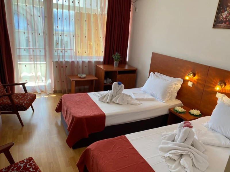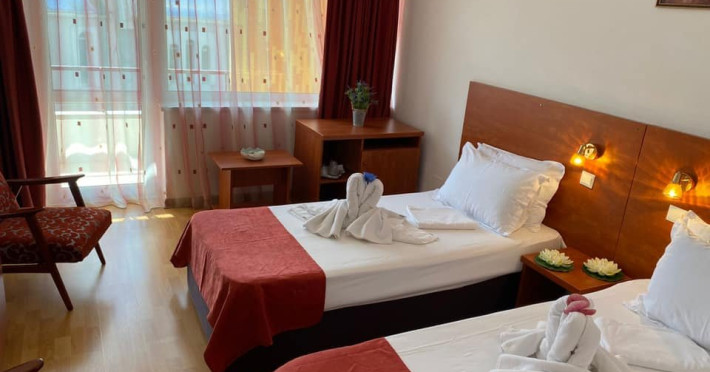 Numar total camere: 95 Duble: 92 Apartamente: 3- apartamentul este compus din 2 camere, dormitor cu pat matrimonial, living cu canapea extensibila, baie cu dus.
