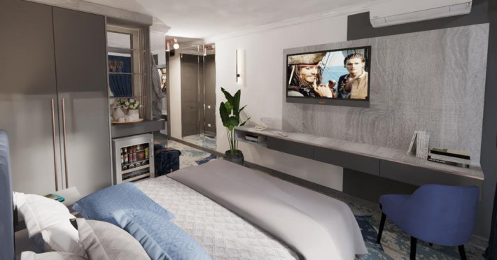 DESCRIERE CAMERE Nr. camere: 37 Duble Luxury 54 Duble Luxury Vedere mare 8 Triple Luxury: camera dispune de 3 paturi de 1 persoana, dintre care 2 se pot uni; Apartamente Luxury: dispun de doua dormitoare cu pat matrimonial, vedere mare; Apartamentele Luxury Superior au suprafata mai mare. Dotari camere: pat matrimonial, aer conditionat, tv, minibar, aer conitionat.