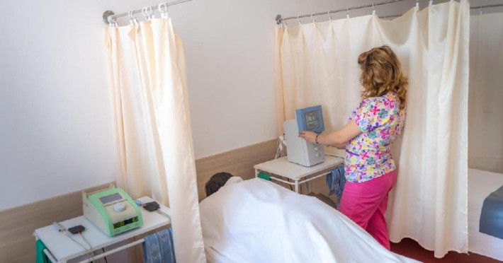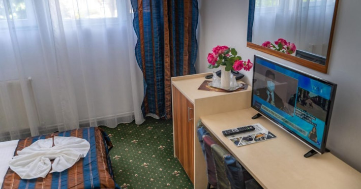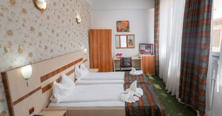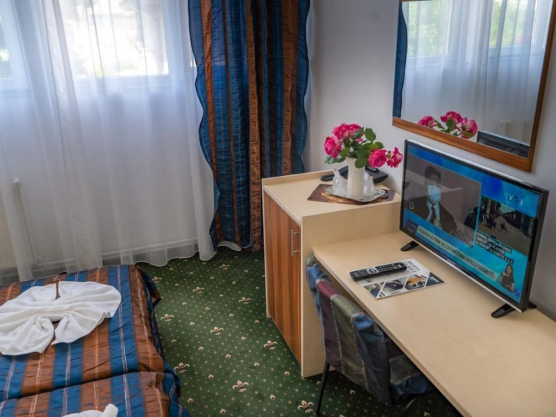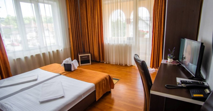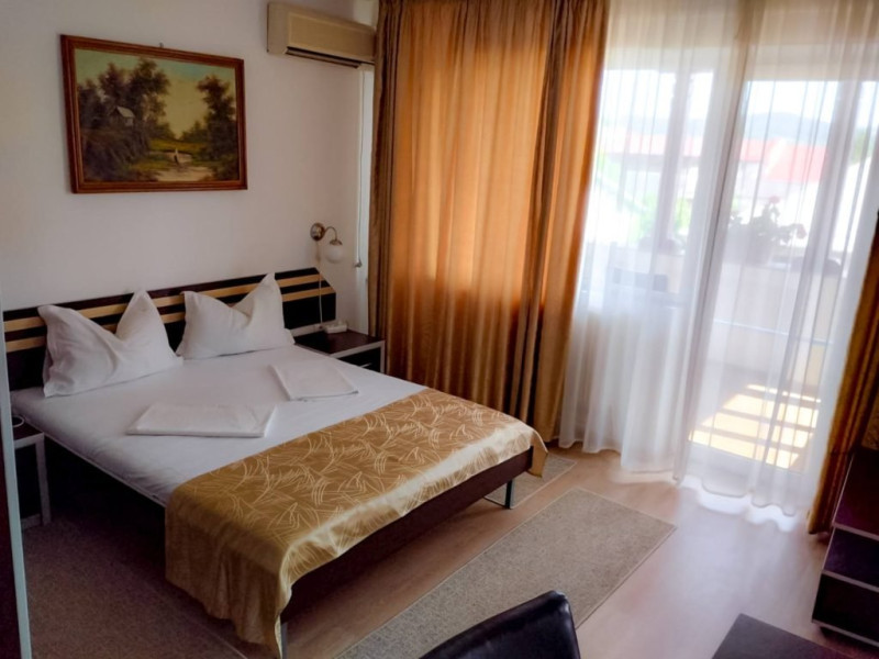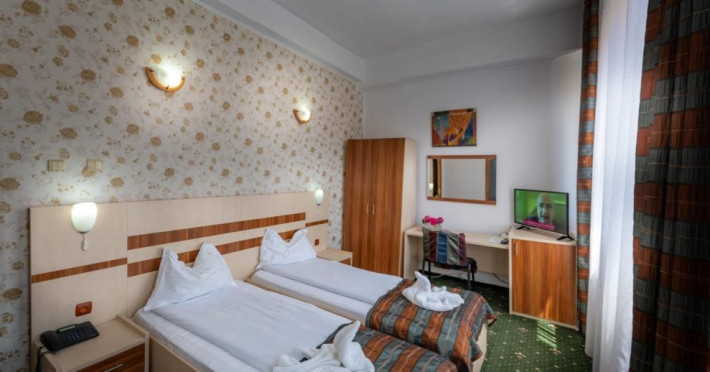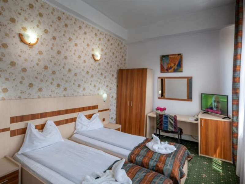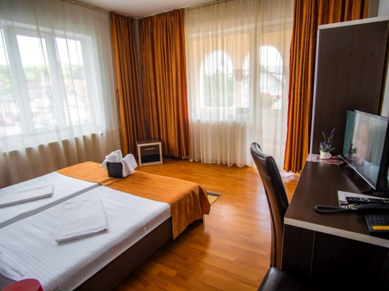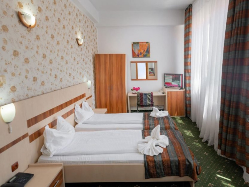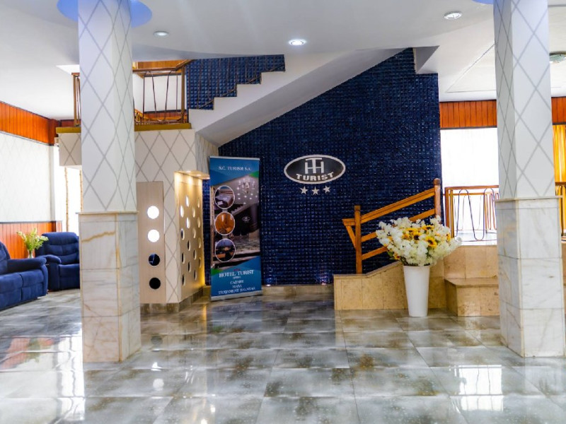 INFORMATII GENERALE Hotel Turist se afla in Pucioasa, judetul Dambovita, la 20 km de Targoviste. DESCRIERE UNITATE DE CAZARE Hotelul dispune de parcare, restaurant, baza de tratament, sala fitness, salina, sauna, jacuzzi si ciubar cu apa sarata. FACILITATI UNITATE In baza de tratament turistii pot beneficia de: - hidrobalneoterapie (bai calde cu apa minerala sulfuroasa la cada sau bazin) - include un sector de balneoterapie partiala, dotat cu 10 cazi (sulf + plante) respectiv un sector de balneoterapie generala, cu 2 bazine cu apa sulfuroasa pentru imersie si kinetoterapie generala; - hidrotermoelectroterapie - presupune instalatii pentru dusuri subacvale, instalatii pentru bai galvanice, impachetari cu parafina intr-o sala cu 10 canapele. Electroterapia se realizeaza in cabinete pentru tratament cu curenti de medie, joasa si inalta frecventa, curenti diadinamici si exponentiali, cu laserterapie, stimulari electrice functionale, ionogalvanizari, sonoterapie (ultrasunete), unde scurte, unde magnetice, raze infrarosii locale si generale, curenti Trabert. Tratamentul este completat prin aerosoloterapie cu apa sulfuroasa si medicamente solubile; - kinetoterapia si gimnastica recuperatorie se realizeaza in sala de kinetoterapie si sala de masaj (masaj regional si masaj segmentar) dotate cu instalatii de recuperare motorie, pentru reabilitare neuromusculara si fitness; - salinoterapia - este reprezentata de camera haloterapeutica, o salina amenajata pentru 8-10 persoane/ serie. Durata procedurilor efectuate este cuprinsa intre 10 si 30 de minute, in functie de prescriptia medicului; Afectiuni complementare care se pot trata in baza de tratament a hotelului: respiratorii, ale sistemului nervos central si periferic, vasculare, ale pielii, ginecologice. DESCRIERE CAMERE Hotelul dispune de camere duble cu pat matrimonial sau doua paturi twin. Acestea au bai cu cada sau cabina de dus, cablu TV si telefon, mobilier modern si obiecte de inventar conform normelor, beneficiind de toate facilitatile necesare obtinerii confortului: incalzire si apa calda cu centrala proprie, minifrigider, servicii prompte de curatenie a camerei si igienizare a bailor. LOCALIZARE Hotel Turist se afla in Pucioasa, judetul Dambovita, la 20 km de Targoviste. ATRACTII TURISTICE Parcul Independentei, Muzeul de Etnografie, Cetatea Sfanta Noul Ierusalim, Palatul Brancovenesc de la Potlogi, Complexul Muzeal Curtea Domneasca de la Targoviste.POLITICI Pentru tratament asigurati sunt necesare cardul de sanatate, bilet de trimitere de la medicul de familie, cupon pensie/adeverinta salariat. SERVICII DE MASA Mesele se servesc in restaurantul propriu.