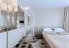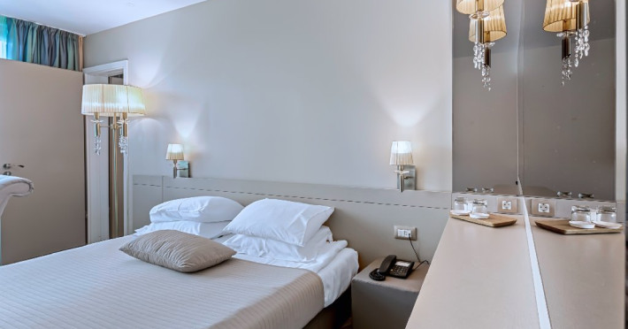 Camera dubla are o suprafata de 15.50 mp, patul are dimensiunea de 160/200 cm, minicanapeaua din dotare 80 cm lungime.