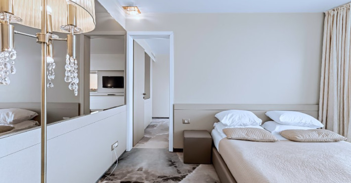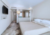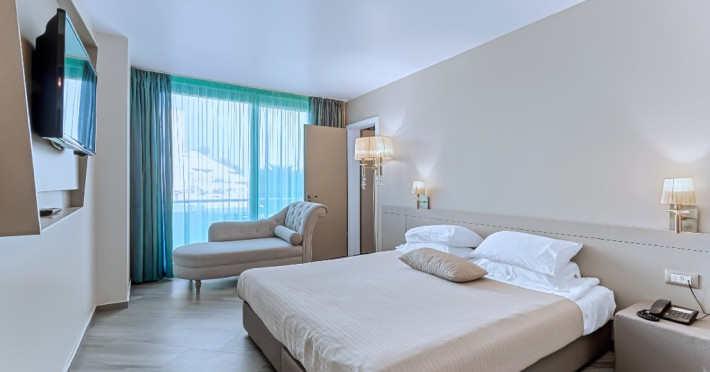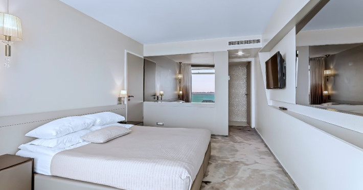 Apartamente: 8 - apartamentul este compus din doua camere cu usa intre ele, fiecare camera dispune de baie proprie si balcon. Incepand cu anul 2021 apartamentele dispun de pat matrimonial in ambele camere. Toate apartamentele au vedere frontala la mare.