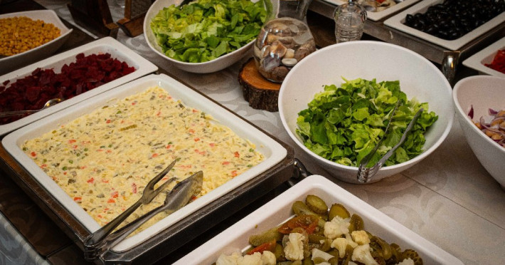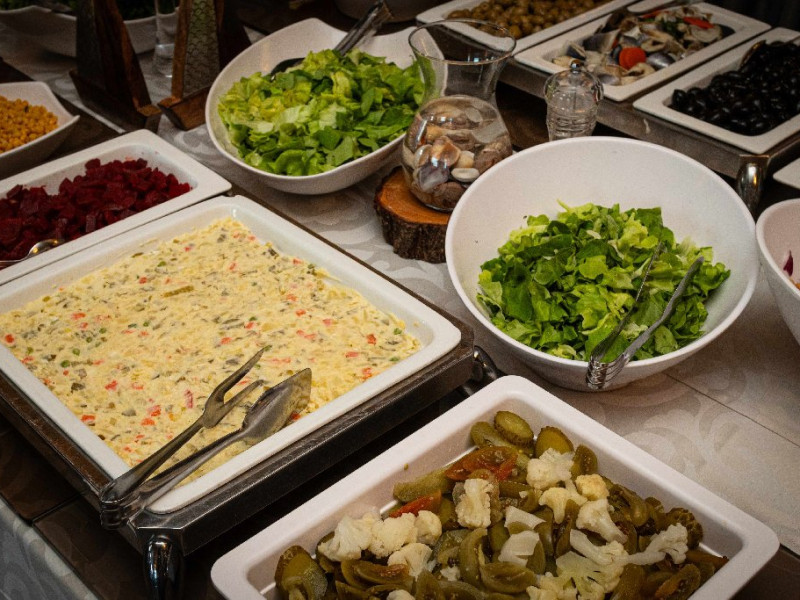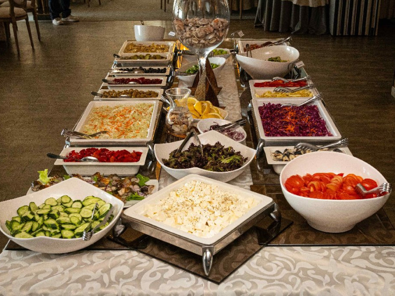 SERVICII MASAToate mesele sunt servite sub forma de bufet (bucatarie romaneasca si internationala diversificata), incluzand surpriza bucatarului (la cina), bufet de salate, fructe si deserturi.
