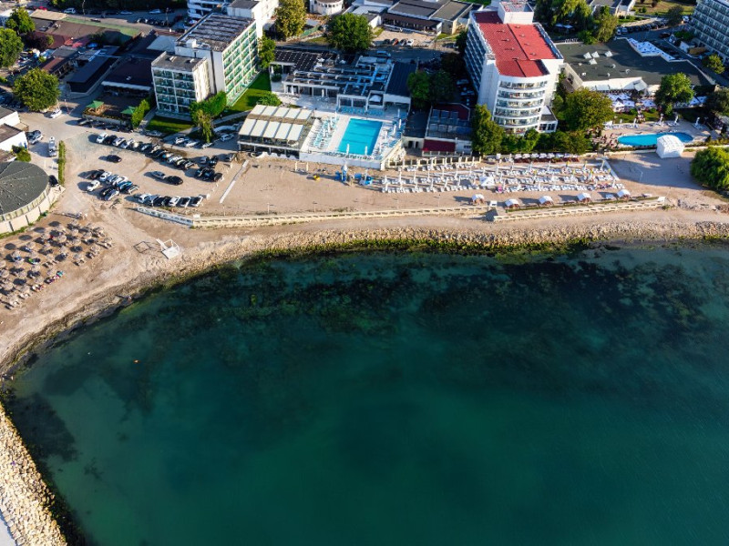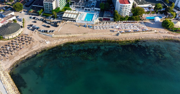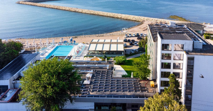 FACILITATI UNITATEHotelul dispune de restaurant care serveste preparate din bucataria romaneasca si internationala, lift, piscina in aer liber, lobby-bar in receptie, terasa exterioara cu vedere la mare, loc de joca pentru copii amenajat pe plaja ,gradina amenajata, parcare privata gratuita in limita locurilor disponibile.