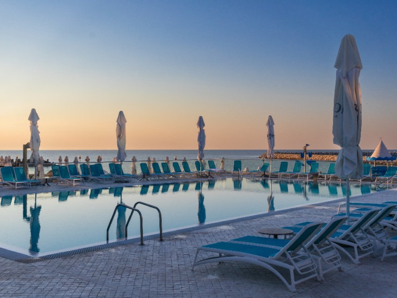 La exterior, restaurantul se continua cu o terasa generoasa care va permite sa va relaxati bucurandu-va de briza marii. Hotelul dispune de plaja proprie, iar oaspetii sai au acces gratuit la sezlonguri si umbrele.