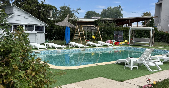 Dotari si servicii Hotelul pune la dispozitie o piscina amenajata cu sezlonguri, umbrele si bar, restaurant propriu cu terasa in aer liber ce serveste preparate din bucataria traditionala si internationala, loc de joaca pentru copii cu animatori si activitati interactive, camera de bagaje. Turistii hotelului beneficiaza de reducere de pana la 50% la sezlongurile de la plaja privata. Parcarea privata este gratuita, in limita disponibilitatii.