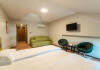 Apartamentele dispun de un generos pat matrimonial si o canapea extensibila, asezate in camere diferite, fara usa desparitoare. Includ un dulap spatios cu rafturi, zona umerase si baie proprie. De la balconul apartamentului turistii se pot bucura de peisajul ce inconjoara ocrotitor locatia. Suprafata camerei: 35 mp. Capacitate: 2 adulti si 2 copii. Sunt 4 apartemente.