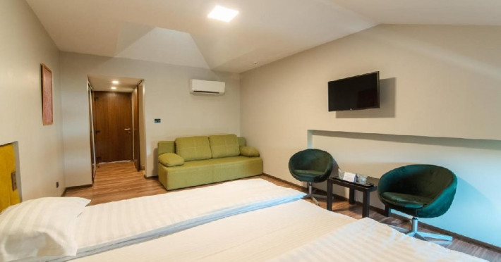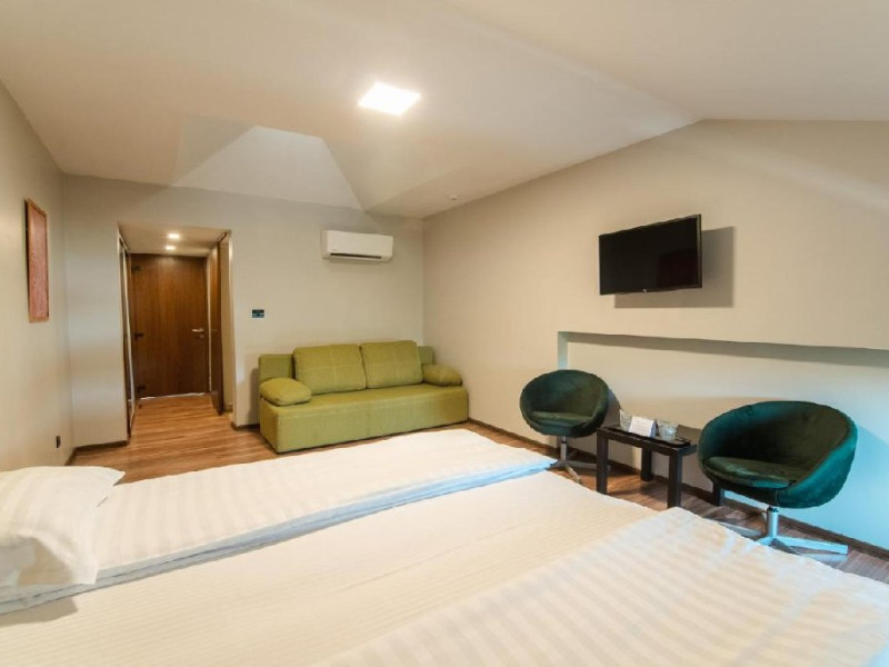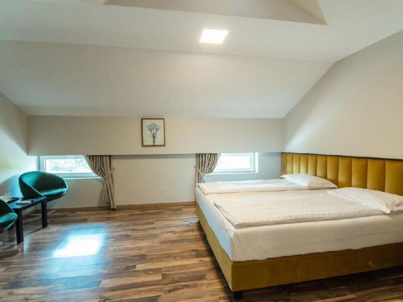 Camere duble dispun de paturi twin/matrimoniale, potrivite pentru un cuplu sau 2 prieteni, baie proprie, dulap spatios cu rafturi, sertare si zona umerase. De la balconul camerei turistii se pot bucura de peisajului ce inconjoara ocrotitor locatia. Suprafata camerei 20 mp. Sunt destinate pentru 2 adulti. Sunt 12 camere duble cu balcon si 7 camere duble la mansarda. Camerele triple dispun de paturi twin, potrivite pentru un cuplu sau 3 prieteni si o canapea extensibila. Includ un dulap spatios cu rafturi, zona umerase si baie proprie. De la balconul camerei turistii se pot bucura de peisajul ce inconjoara ocrotitor locatia. Suprafata camerei 30 mp, capacitate 3 persoane. Sunt 2 triple cu balcon si 4 la mansarda.