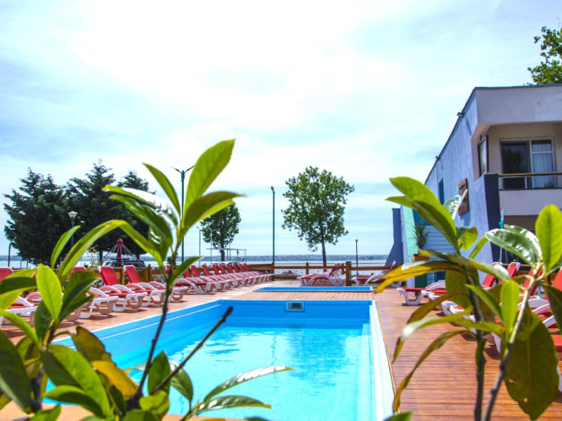 LOCALIZARE Hotelul este situat in nordul statiunii, pe malul lacului Siutghiol, la 100 m de plaja. Plaja: larga, nisipoasa, cu intrare lina in mare.