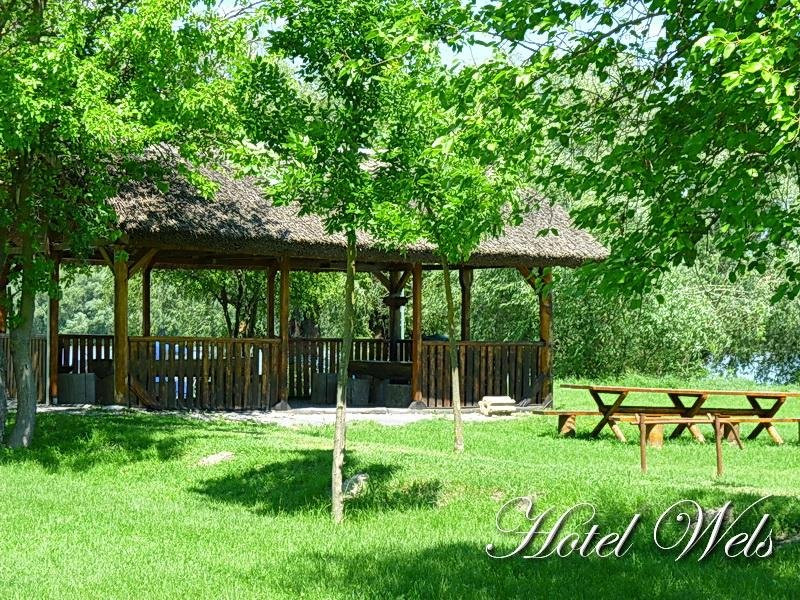 INFORMATII GENERALE Hotelul Wels este situat pe o colina cu iesire la Dunare, intr-o zona linistita, la 2 km de soseaua Tulcea-Mahmudia. DESCRIERE UNITATE DE CAZARE Construit cu bun gust, remarcat prin liniile ferme, avand rafinamentul imbinarii armonioase intre stilul rustic, clasic si modern, cu atentia pentru detalii si calitatea finisajelor interioare, cu spatii largi, in nunate odihnitoare, Hotelul WELS ofera calitate si confort. FACILITATI UNITATE Hotelul dispune de urmatoarele facilitati: restaurant, parcare proprie, loc de joaca pentru copii, internet, bar, terasa, foisor rustic, ponton de acostare pentru ambarcatiunile proprii cat si ale turistilor, o sala multifunctionala cu masa de tenis si biliard si aparate fitness, care se poate insa transforma la cerere in sala de conferinta, piscina in aer liber, biciclete, teren de volei.