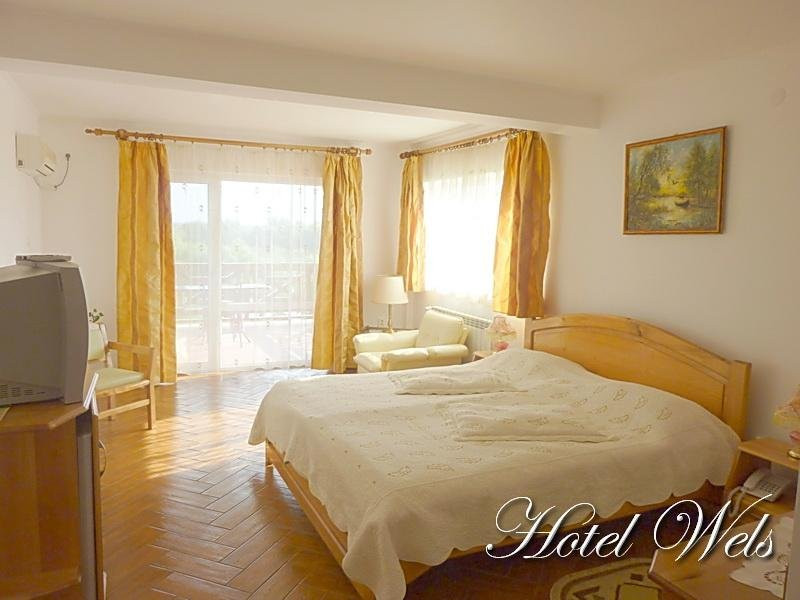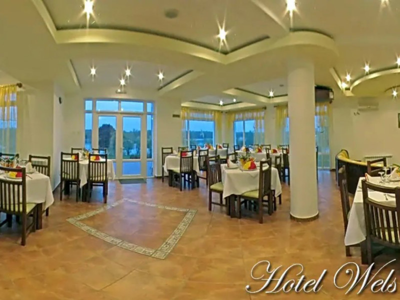 Servicii contra cost: excursii in Delta cu ambarcatiuni proprii cu motor, inchiriere articole pentru pescuit, bird-watching, servicii spalatorie / calcatorie, inchiriere biciclete, plimbari cu caruta, foc de tabara la foisorul de pe malul Dunarii. DESCRIERE CAMERE Resort Hotel WELS 4* va pune la dispozitie 34 locuri de cazare intr-un total de 17 camere, din care: - 8 camere duble twin, cu 2 paturi separate, care se pot uni la cerere, cu balcon, cu vedere la Dunare - 3 camere duble twin, cu 2 paturi separate, care se pot uni la cerere, cu balcon, cu vedere la gradina - 2 camere duble twin, cu 2 paturi separate, care se pot uni la cerere, fara balcon, cu vedere la gradina - 2 camere duble matrimoniale, cu terasa si vedere la Dunare - 1 doubling ( 2 camere duble twin cu hol comun, cu bai separate ), cu 2 paturi separate, care se pot uni la cerere, cu balcon si vedere la gradina Dotari camere: aer conditionat, TV, minibar, seif, baie cu dus, internet, uscator de par, telefon miniterasa/balcon la 15 camere, radio, plasa insecte. LOCALIZARE Acces rutier: din Tulcea se merge catre Mahmudia / Murighiol, se trece prin localitatile Malcoci - Nufaru - Victoria. Dupa ce se trece de satul Victoria ( se vede pe partea stanga o biserica), se mai merge pe soseaua principala aproximativ 3 km pana se vede un indicator catre localitatea Baltenii de Sus si panoul publicitar cu hotelul WELS. Se face un drum spre stanga si mai merge aproximativ 2 km pana la hotel. La intrarea in localitate, imediat dupa Biserica, pe partea stanga, este situat hotelul. ATRACTII TURISTICE Cetatea Argamum (Orgame) - aflata la Jurilovca Cetatea Halmyris- in comuna Murighiol, Cetatea Histria- pe malul lacului Sinoe, Cetatea romano-bizantina Dinogetia - in comuna Jijila; Geamia Ali-Gaza-Pasa - situat in orasul Babadag Cetatea romana Noviodunum - langa orasul Isaccea Cetatea romana Arrubium - in orasul Macin Cetatea romana Beroe- in comuna Ostrov, Cetatea romana de la Enisala, Manastirea Cocosu, Manastirea Celic-Dere, Manastirea Saon, Muzeul Farul Vechi (genovez) - Sulina. POLITICI Nu sunt permise animalele de companie. SERVICII DE MASA Se acorda in unitatea restaurant Wels, categoria 4 stele, micul dejun in sistem bufet/ variante de meniu, pranzul si cina a la carte. FACILITATI COPII Piscina, leagan, loc de joaca exterior, plaja FACILITATI EVENIMENTE O sala multifunctionala cu masa de tenis si biliard si aparate fitness, care se poate insa transforma la cerere in sala de conferinta.