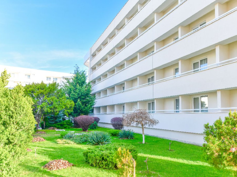 FACILITATI UNITATE Dotari generale: - restaurant cu terasa; piscina in aer liber, plaja proprie, parcare proprie contra cost (25 lei/zi); internet wireless in receptie si spatiile comune; bar de zi, terasa; lift; 5 sali de conferinte dotate modern si versatil. Fitness/Wellness/Sport: piscina in aer liber (acces gratuit; sezlong asigurat in limita disponibilitatilor). Spa - ul hotelului dispune de piscina exterioara cu apa incalzita, salina, jacuzzi, sauna umeda, sauna uscata, dusuri aromatice, dus emotional, cabinet de masaj, fresh bar si terasa cu vedere directa la mare.